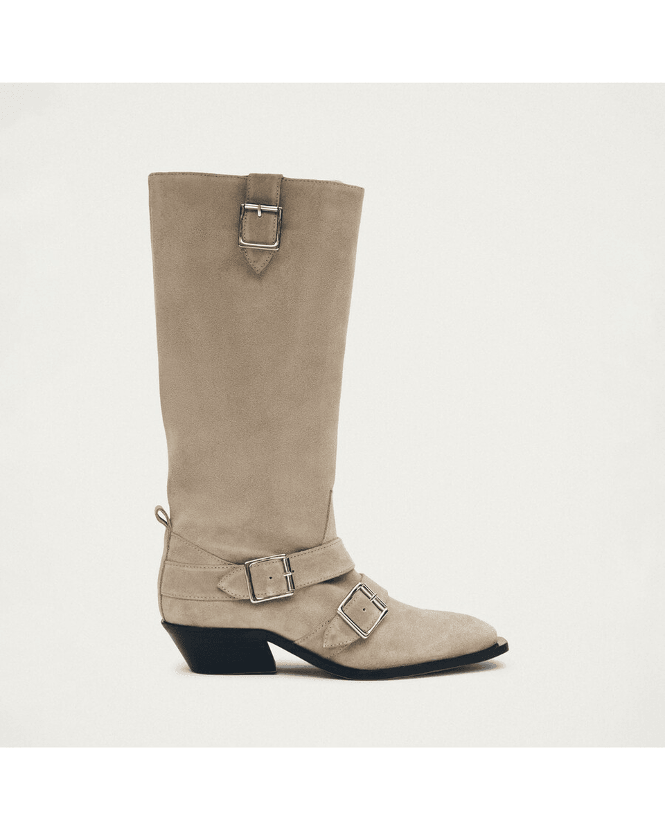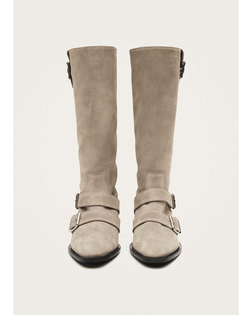 Step into style and sophistication with the Alohas Ryder Suede Beige Leather Boots. Perfectly blending a rider's boldness with a cowgirl's charm, these boots are designed to elevate any outfit.