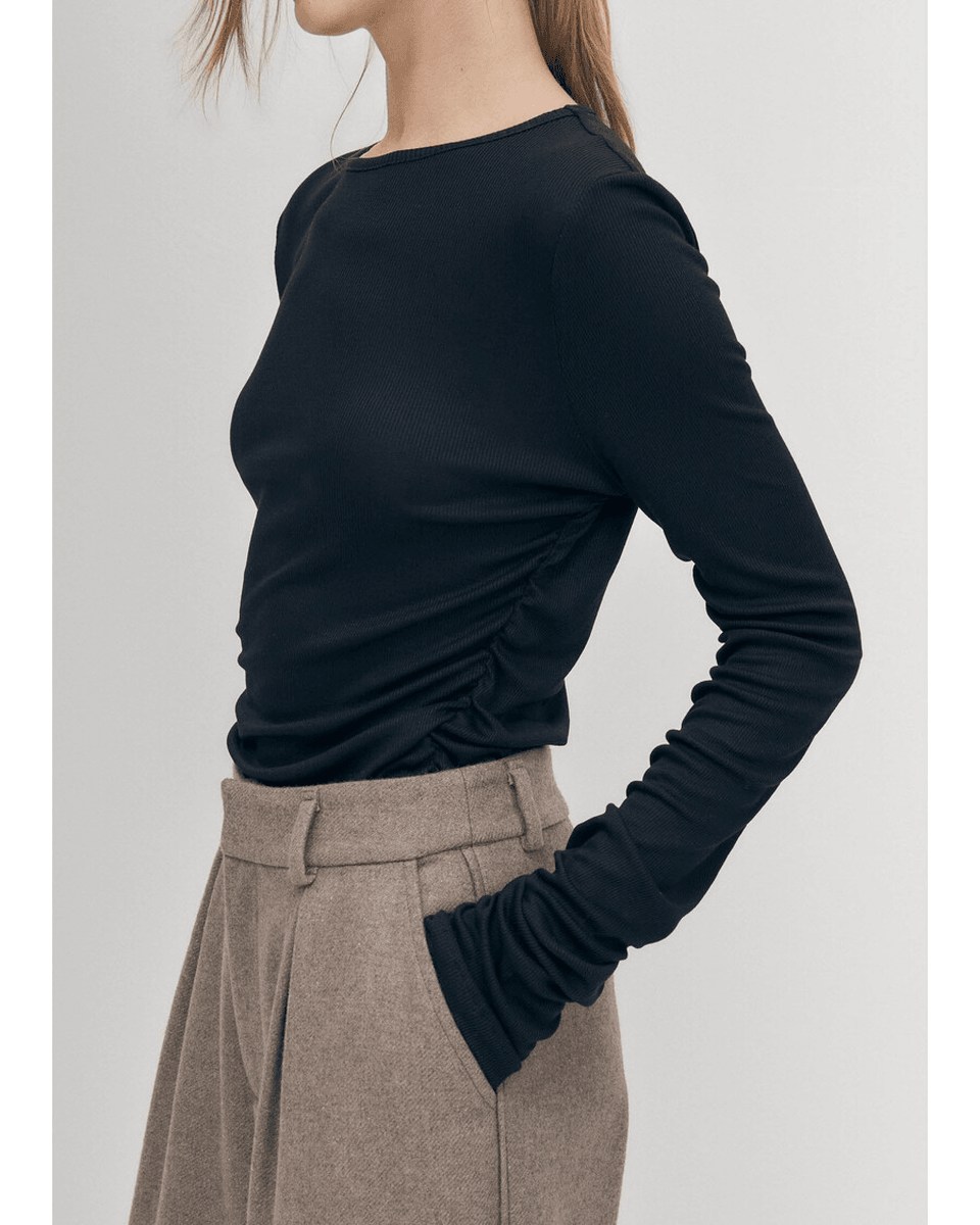 η alohas Mexi μαύρη μπλούζα διαθέτει μια διαχρονική σιλουέτα που κολακεύει κάθε σχήμα. οι μοναδικές ραμμένες λεπτομέρειες κατά μήκος των χεριών και του μπροστινού μέρους δημιουργούν ένα εντυπωσιακό αποτέλεσμα, κάνοντάς την εξαιρετική επιλογή τόσο για μέρα όσο και για νύχτα. συνδύασέ την με τζιν για ένα Casual Look ή φόρεσέ την με φούστα για μια βραδινή έξοδο.
