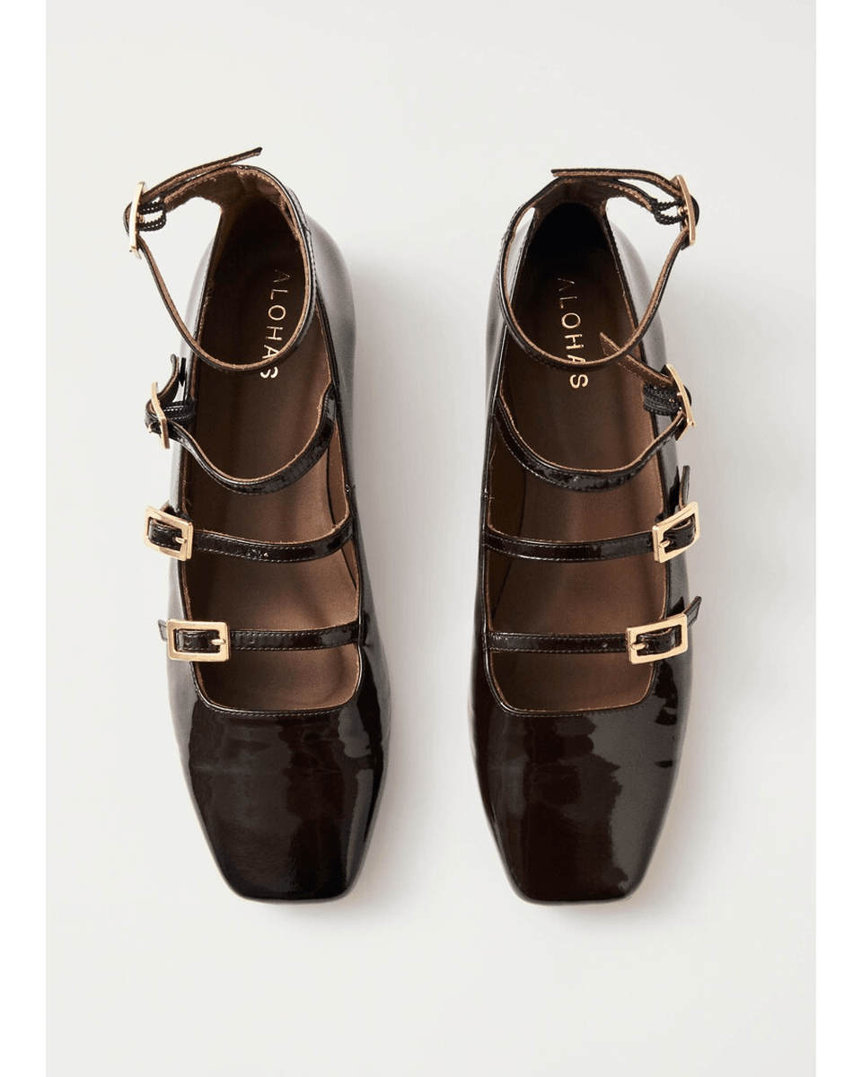 astut Ajattomaan Eleganssiin alohas Luke Onix Kahvinruskeilla Nahka Ballerinoilla. Nämä Klassiset Mary Jane -ballerinat Yhdistävät Tyylin Ja Mukavuuden, Mikä Tekee Niistä Välttämättömän Lisän Kenkäkokoelmaasi. Niiden Rikas Kahvinruskea Lakattu Nahka Ja Säädettävät Hihnat On Suunniteltu Nostamaan Mitä Tahansa Asua Vaivattomasti.