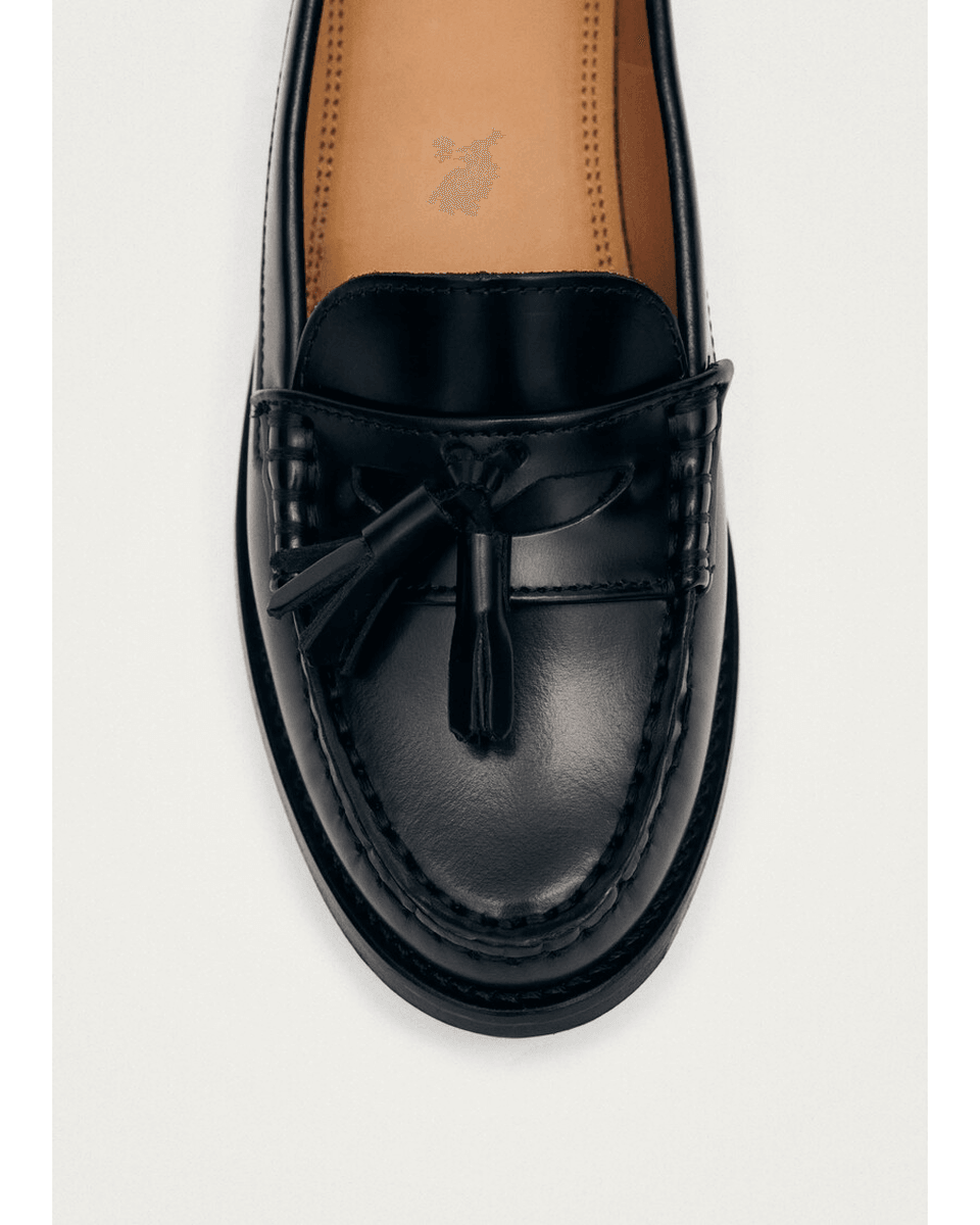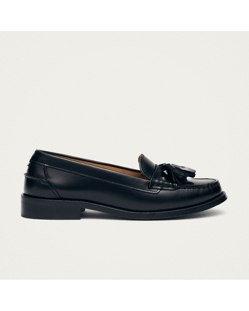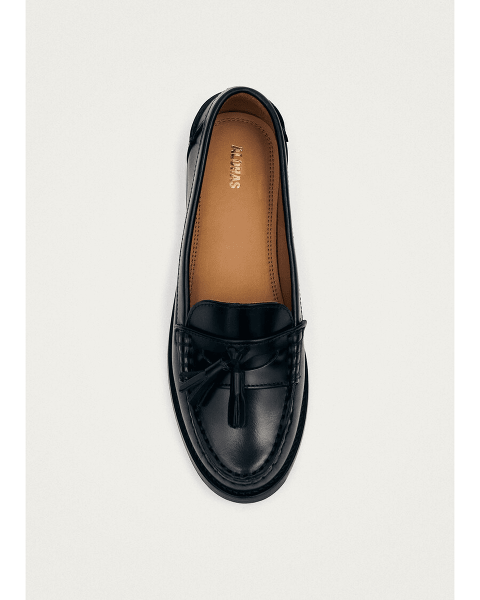 alohas Terrane Mustat Nahka Loafersit Säilyttävät Kaikki Klassiset Loafer-elementit, Esitellen Ajattoman Mokkasiinityylin, Joka Ei Koskaan Mene Pois Muodista. Monimutkainen Tupsu Yksityiskohtaisuus Lisää Ripauksen Tyyliä, Kun Taas Pennytabut Parantavat Loafereiden Eleganttia Viehätystä. Olipa Ne Yhdistetty Räätälöityihin Housuihin Tai Suosikkifarkkuihisi, Nämä Loafersit Ovat Tarpeeksi Monipuoliset Mihin Tahansa Tilaisuuteen.