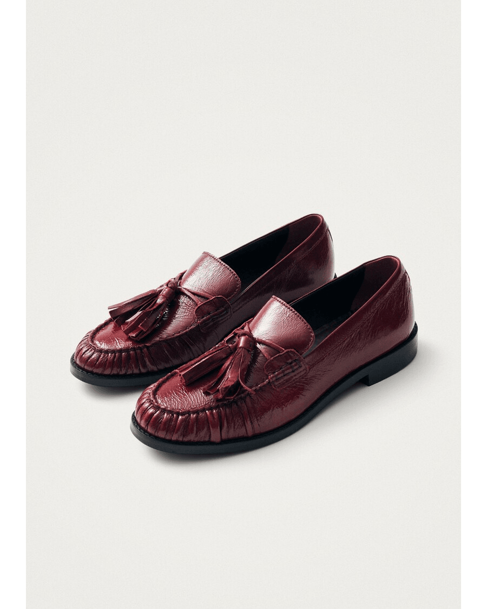 i alohas Marietta Onix Mocassini In Pelle Bordeaux Mostrano Una Texture In Pelle Stropicciata Unica Che Conferisce Profondità Alla Loro Finitura Lucida. Le Eleganti Nappine E Le Linguette Penny Esaltano Il Loro Fascino Old-school, Rendendoli Abbastanza Versatili Per Uscite Informali E Occasioni Formali. Che Siano Abbinati A Pantaloni Su Misura O Ai Tuoi Jeans Preferiti, Questi Mocassini Sono Sicuri Di Fare Colpo.