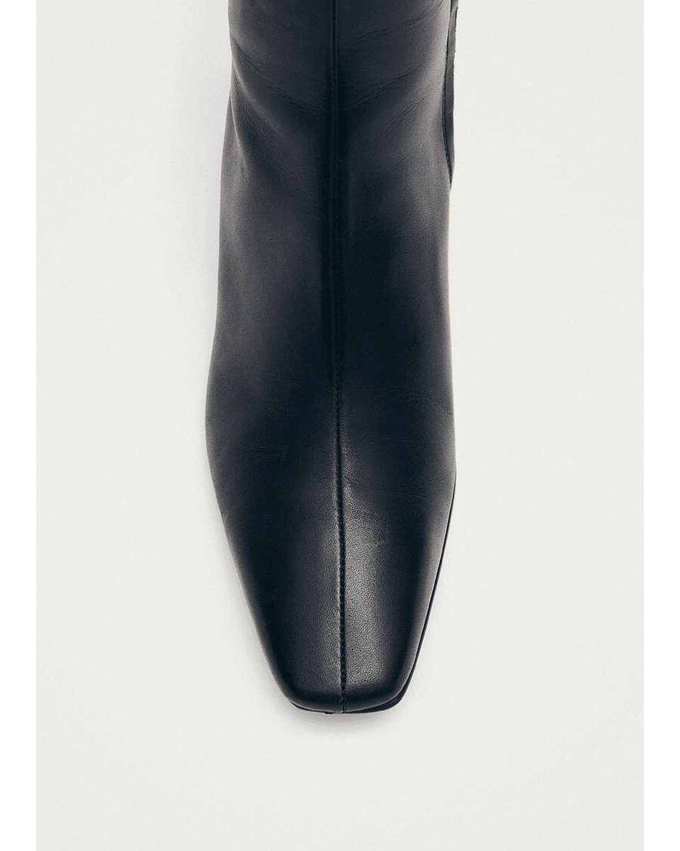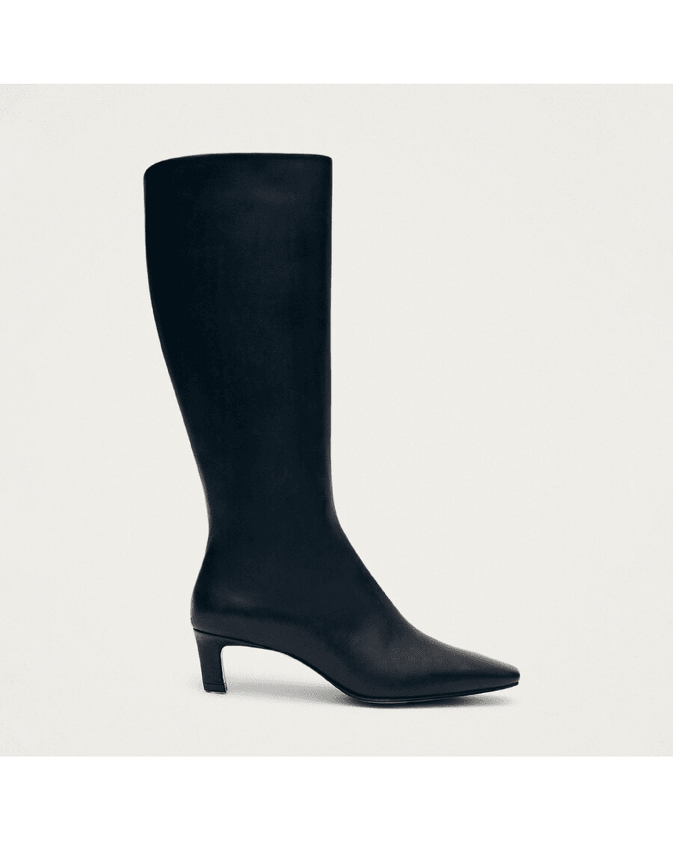 iš Poliruotos Juodos Odos Suformuoti į Vientisą Iki Blauzdų Siekiančią Siluetą, Rory Botai Daro įspūdį, Nesvarbu, Kaip Juos Dėvėsite. Be To, Jie Turi Elegantiškus Kvadratinės Formos Pirštus Ir Mažus Kulniukus - Kalbant Apie Avalynę šaltam Orui, Sunku Rasti Stilingesnį Variantą Nei šie.
