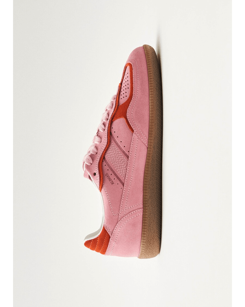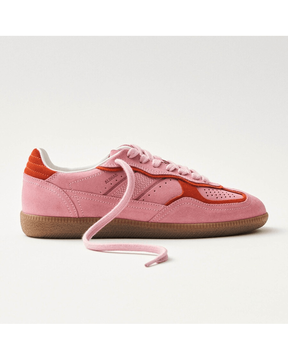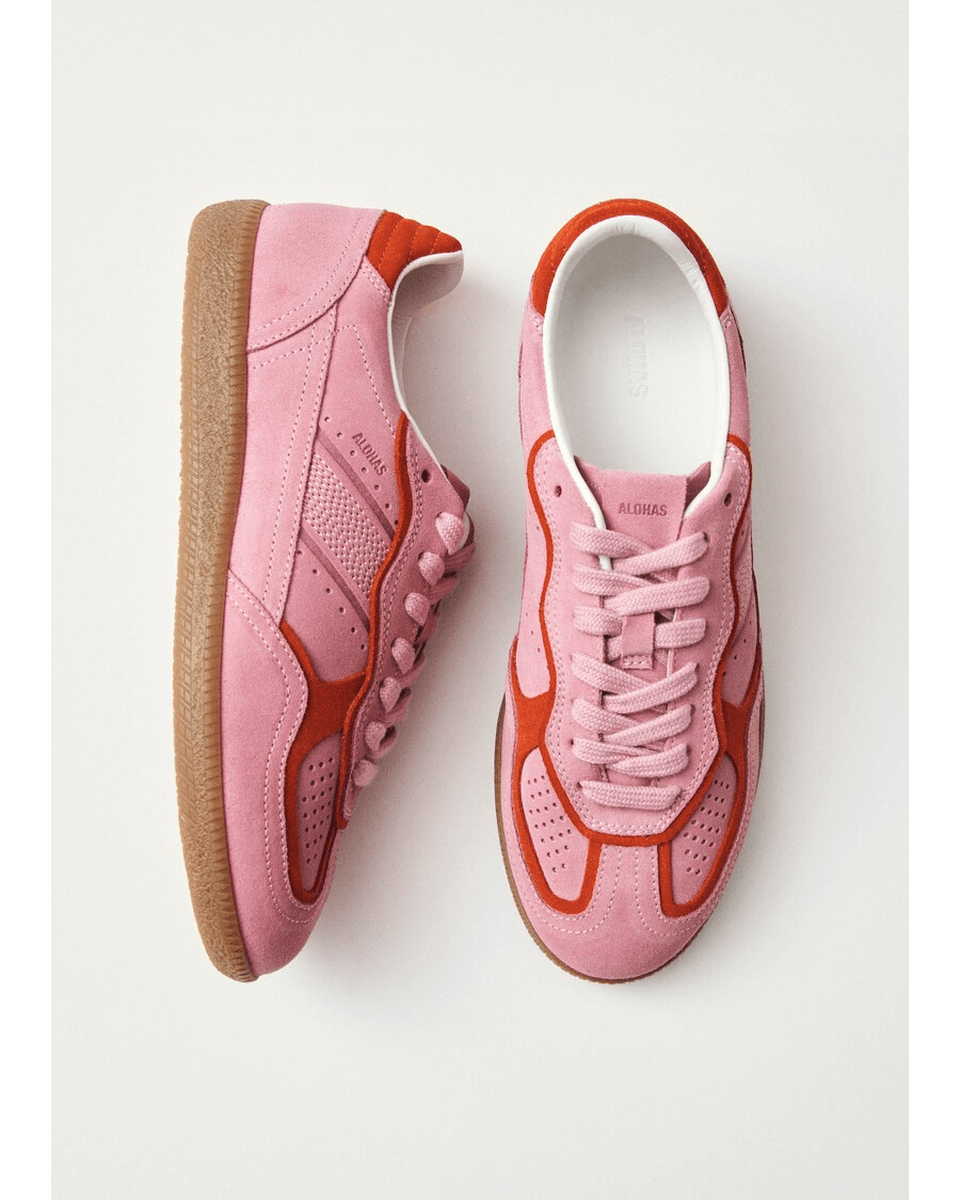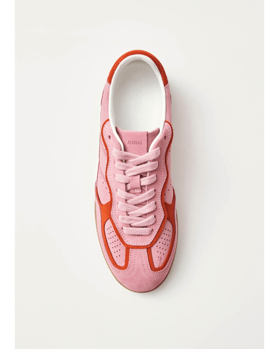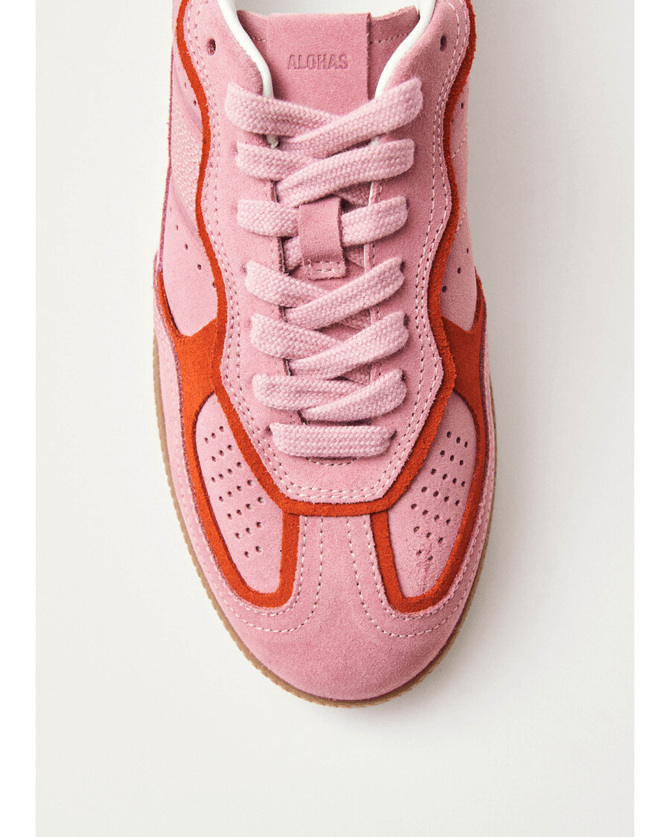 de alohas Tb.490 Rife Sea Pink Leren Sneakers Zijn Ontworpen Voor Degenen Die Zowel Stijl Als Comfort Waarderen. Het Unieke Zeepink Suede Is Geaccentueerd Met Levendige Rode Accenten, Wat Een Opvallend Contrast Creëert Dat Zeker De Aandacht Trekt. Met Een Low-top Silhouet Zijn Deze Sneakers Perfect Voor Casual Uitjes Of Weekendavonturen.