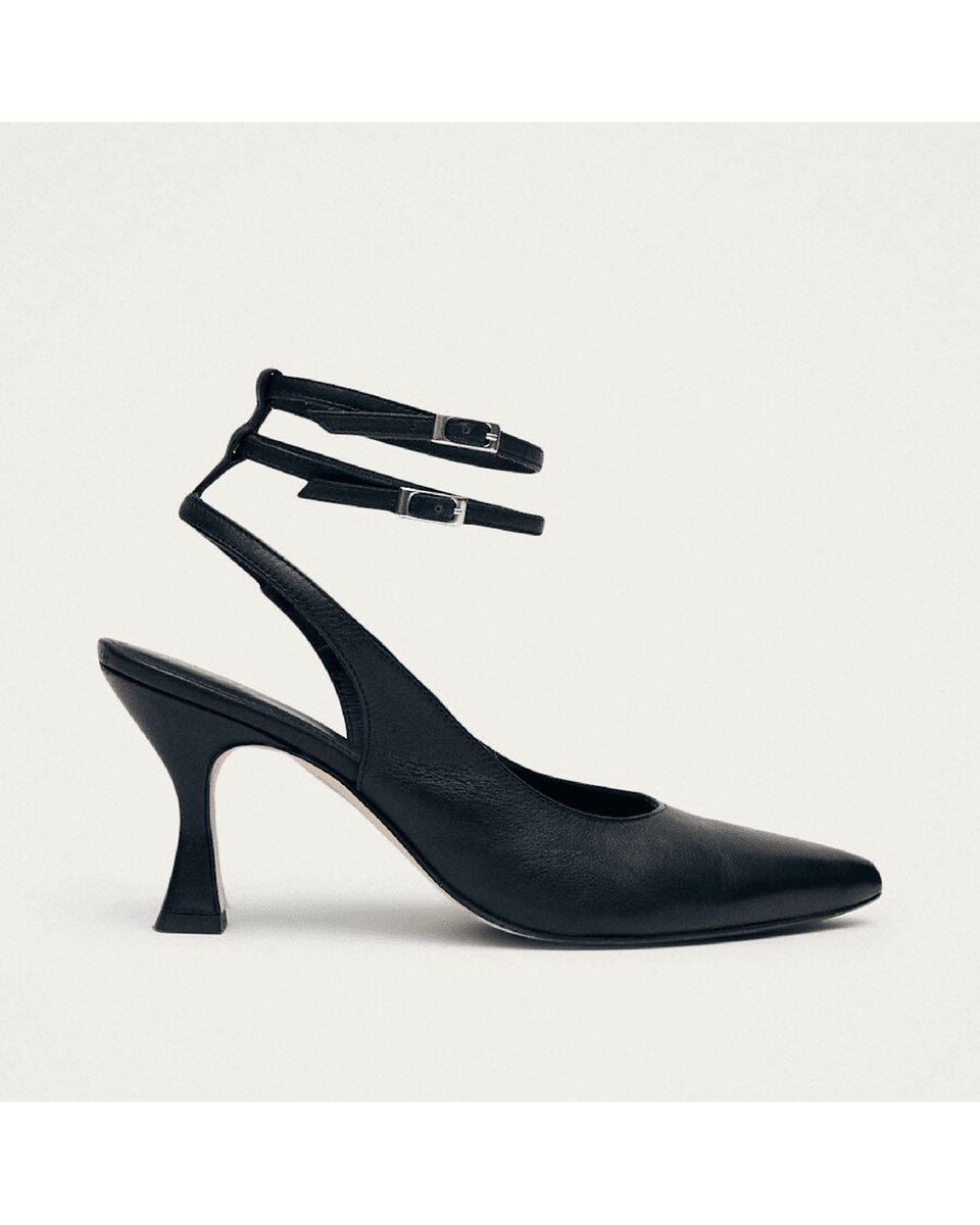 - design Estiloso: Silhueta Atemporal Com Bico Fino Realçada Por Uma Dupla Tira No Tornozelo.