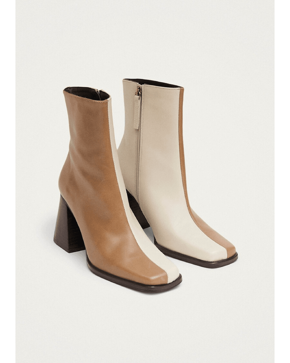 as botas De Tornozelo De Couro Bege Camelo Bicolor Alohas South São Projetadas Para O Indivíduo Antenado Na Moda. Seu Esquema Bicolor Divertido Não Só As Destaca, Mas Também As Torna Versáteis O Suficiente Para Combinar Com Vários Conjuntos. Seja Para Se Vestir Para Uma Noite Fora Ou Manter Um Visual Casual, Essas Botas De Tornozelo São Sua Escolha Ideal.