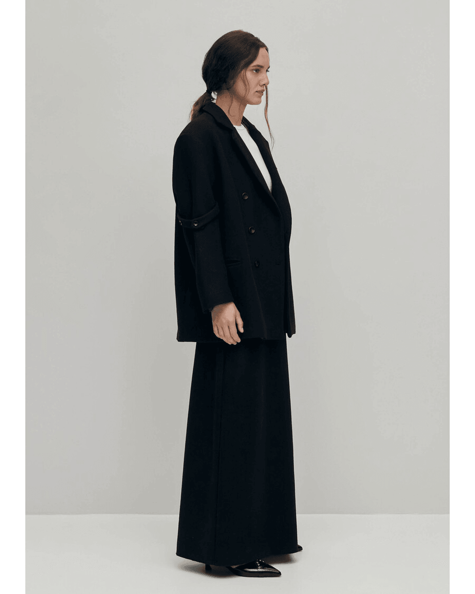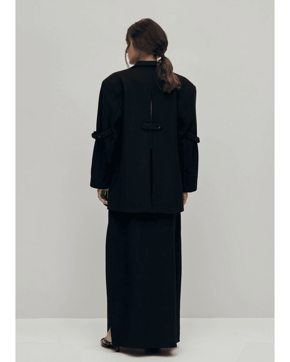 блейзер Alohas Amber Black изготовлен из роскошного черного твила, обеспечивая как комфорт, так и стиль. его двойная передняя часть и застежка на пуговицу создают приталенный вид, который подчеркивает любую фигуру. щедрый разрез сзади не только добавляет современный стиль, но и позволяет свободно двигаться, что делает его идеальным как для профессиональных встреч, так и для вечерних выходов.