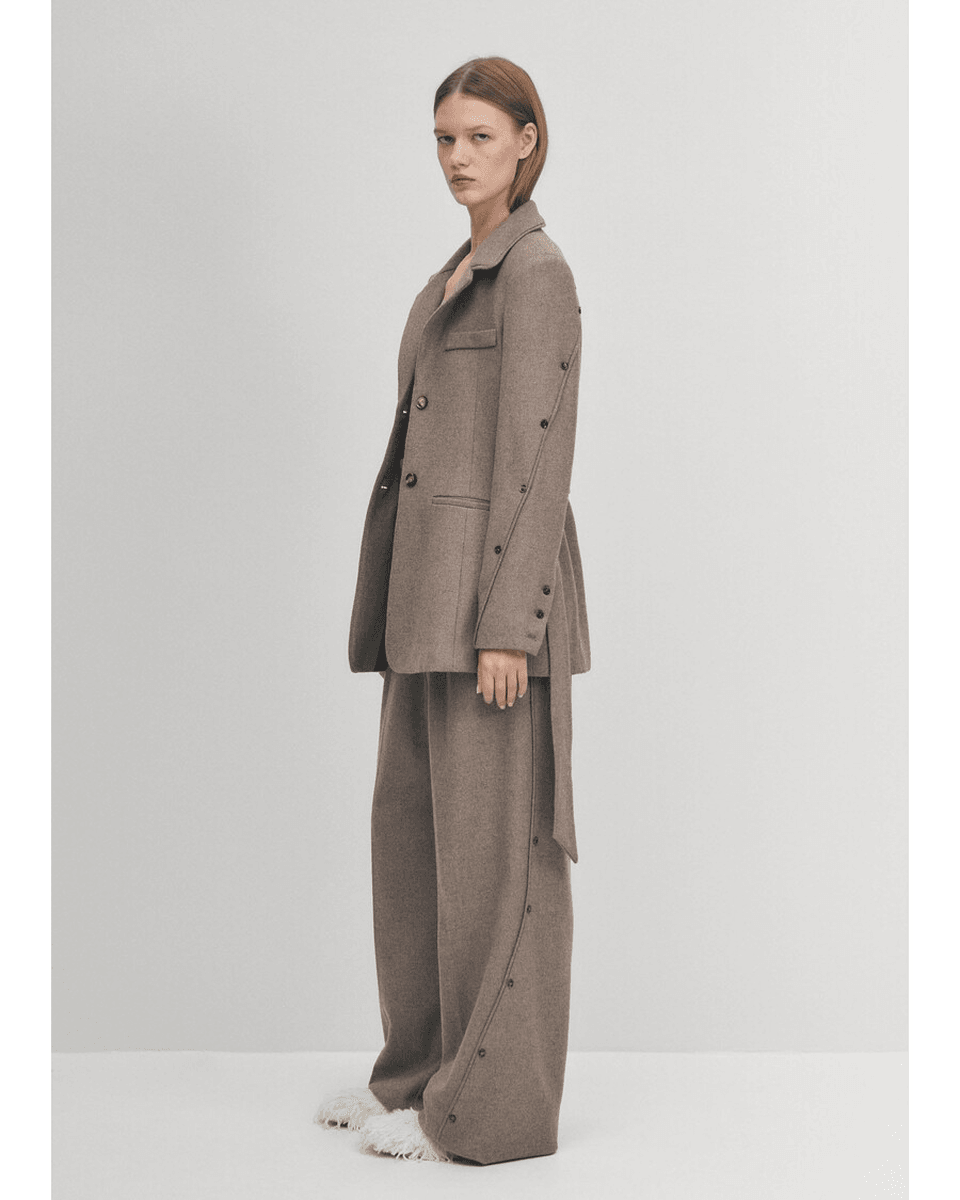 что отличает этот блейзер, так это декоративные пуговицы, проходящие вдоль спины на уровне лопаток, плавно спускающиеся по рукавам. этот привлекающий внимание элемент превращает классический блейзер в уникальное модное заявление.