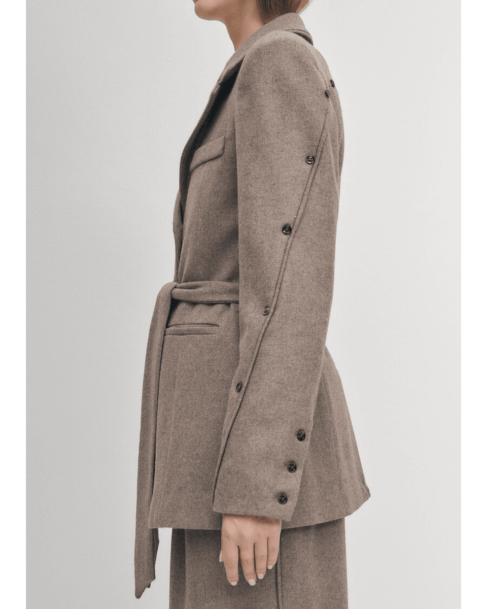 с помощью пояса на завязках вы можете подчеркнуть талию для более четкой формы, что делает его универсальным дополнением к вашему гардеробу. легко сочетайте его с брюками Abbie или юбкой Adela для завершенного образа, который излучает уверенность и стиль.
