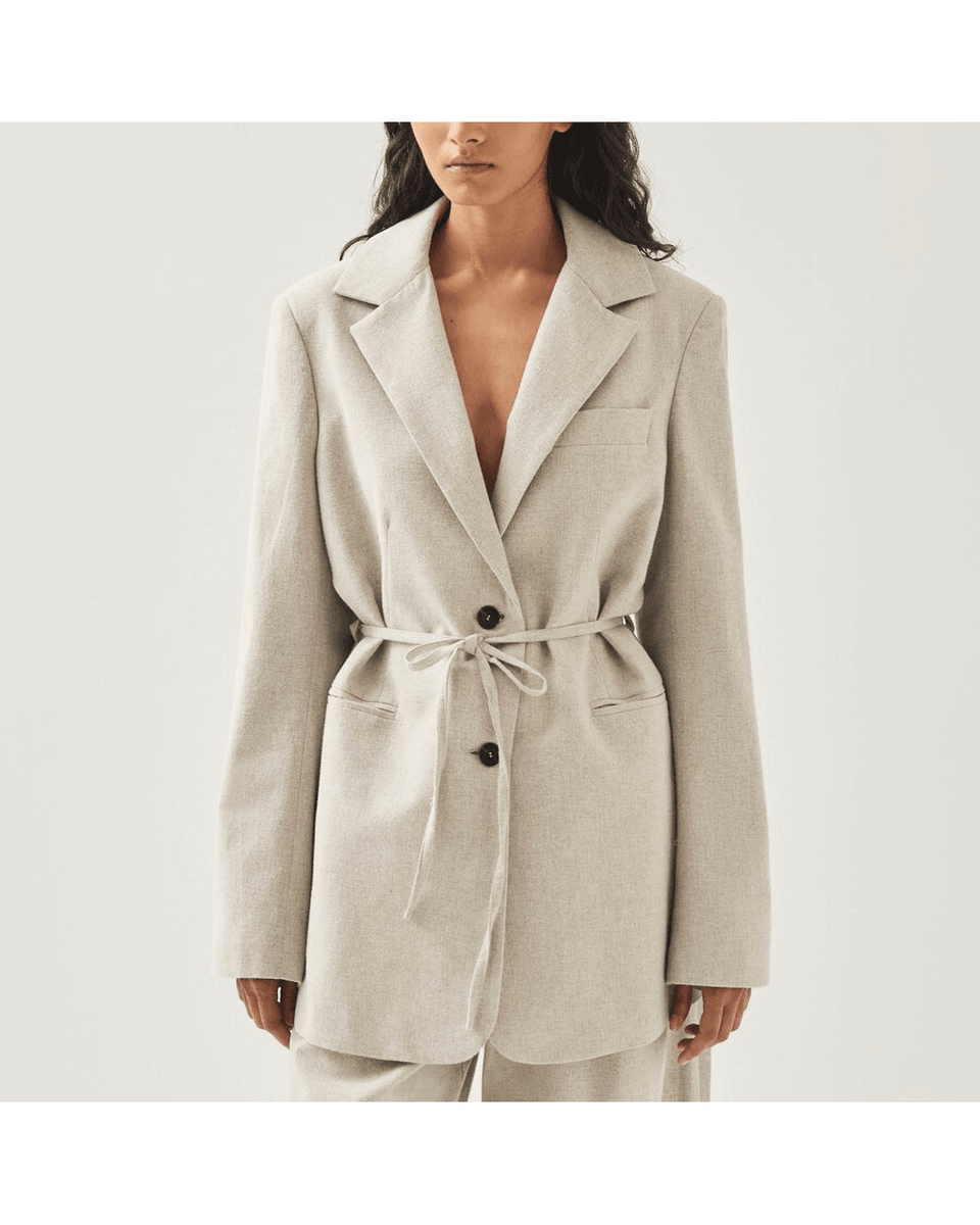 повышайте свой гардероб с потрясающим алохас очень кремовым блейзером. этот шикарный оверсайз блейзер сочетает в себе стиль и комфорт, что делает его идеальным дополнением к любому наряду. изготовленный из 100% органического кремового хлопка, этот блейзер создан, чтобы привлекать внимание, оставаясь при этом без усилий модным.