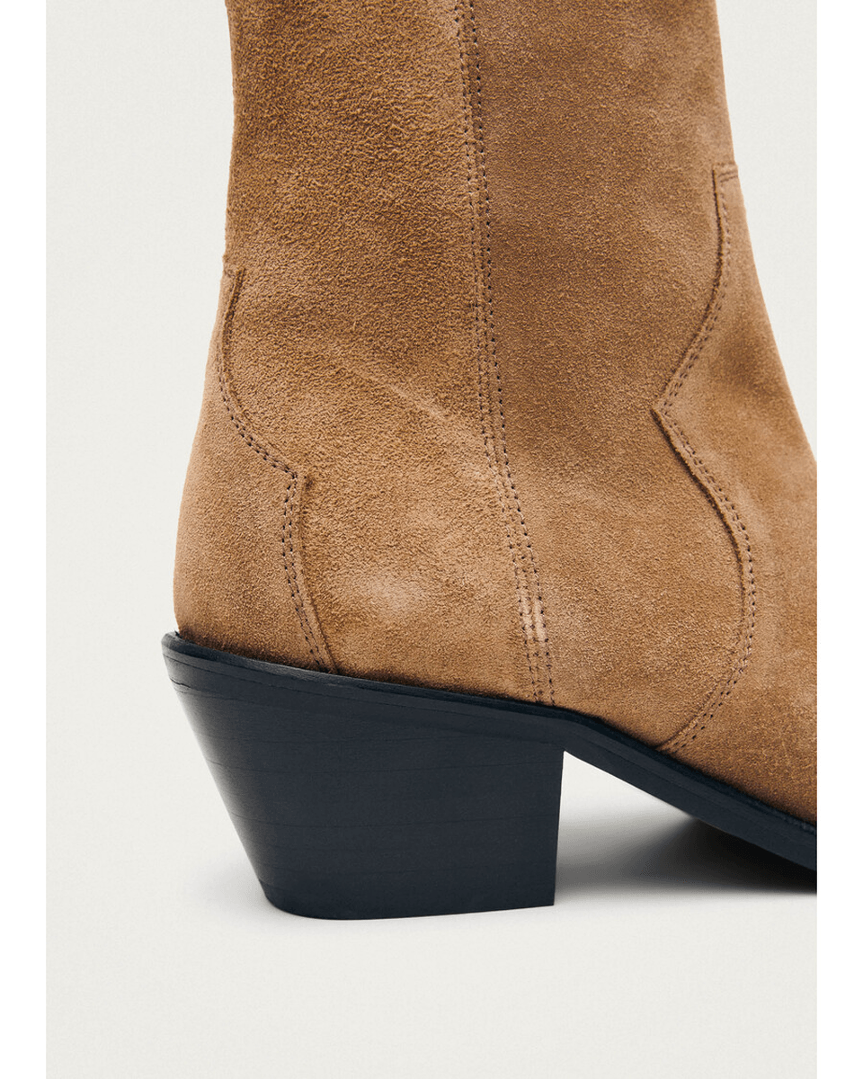 stopite V Stil S Alohas Austin Suede Tan Usnjenimi Gležnjarji, Kjer Se Klasičen Kavbojski čar Sreča Z Moderno Eleganco. Izdelani Iz Luksuznega Bež Semiša, So Ti Gležnjarji Zasnovani Za Dvig Vašega Vsakodnevnega Videza.