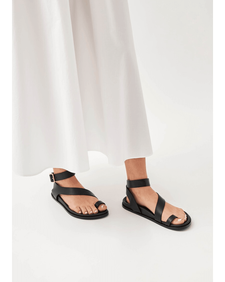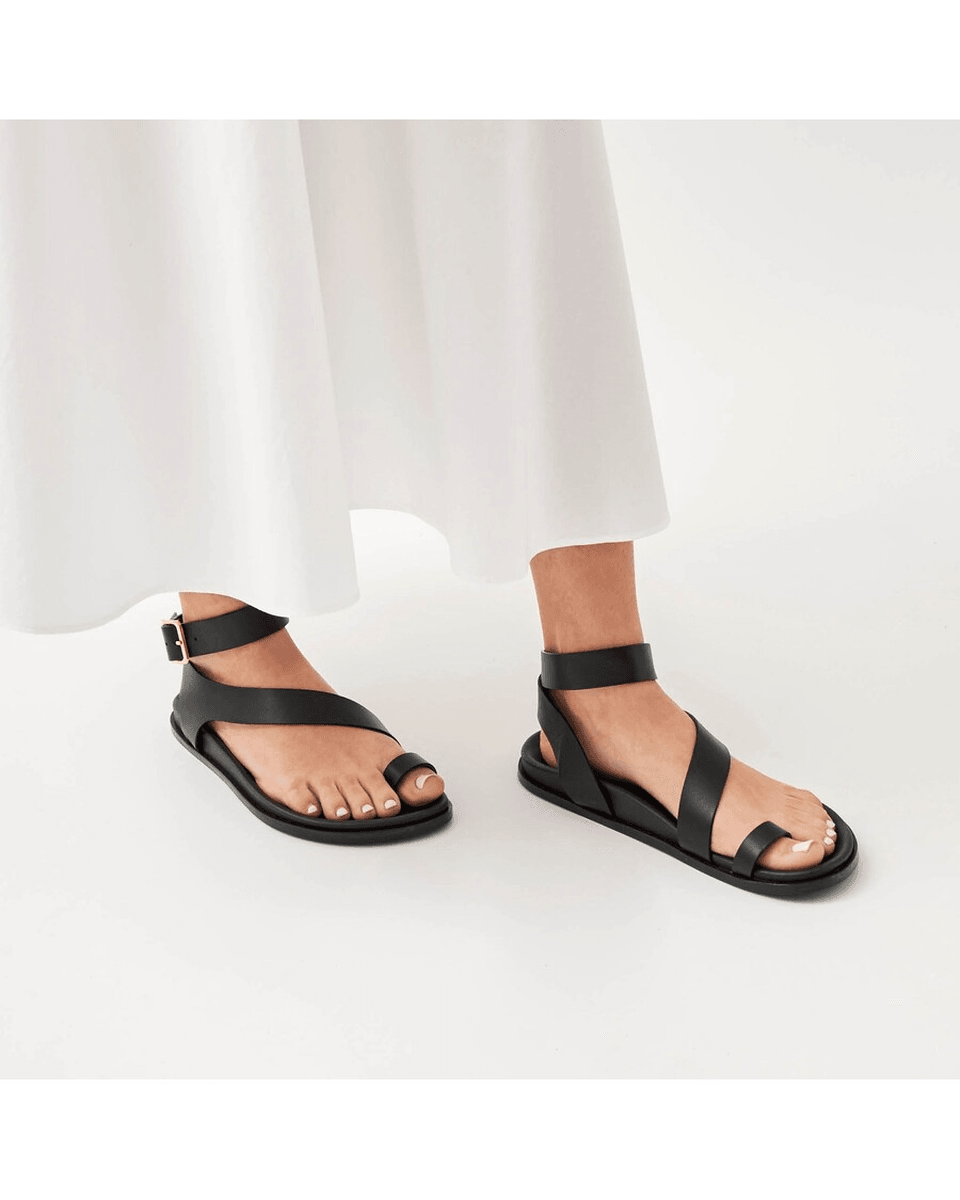 stopite V Eleganco Z alohas Myles črnimi Usnjenimi Sandalami, Kjer Se Sofisticiranost Sreča Z Vsakodnevnim Udobjem. Te Stilne Ravne Sandale S Prstnim Obročem So Zasnovane Tako, Da Dvignejo Vaš Videz, Hkrati Pa Nudijo Podporo, Ki Jo Potrebujete.