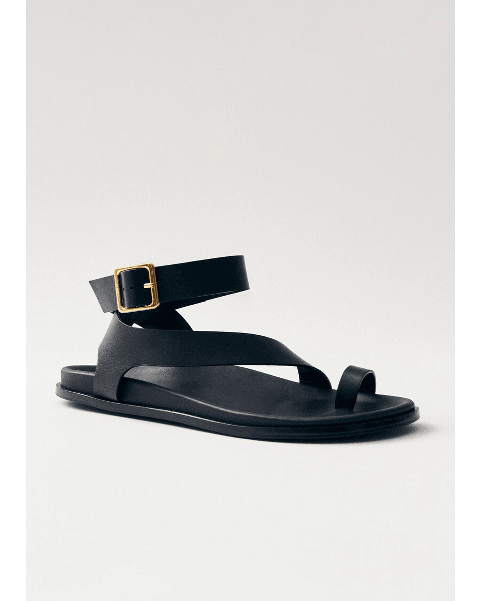 alohas Myles črne Usnjene Sandale So Popoln Dodatek Vaši Poletni Garderobi. S Chic Obliko Prstnega Obroča In Debelim Trakom, Ki Varno Drži Vaš Gleženj, Te Sandale Brez Napora Združujejo Modo In Funkcionalnost. Ne Glede Na To, Ali Se Oblačite Za Nočni Izhod Ali Uživate V Sproščenem Dnevu, So Dovolj Vsestranske, Da Dopolnijo Vsak Videz.