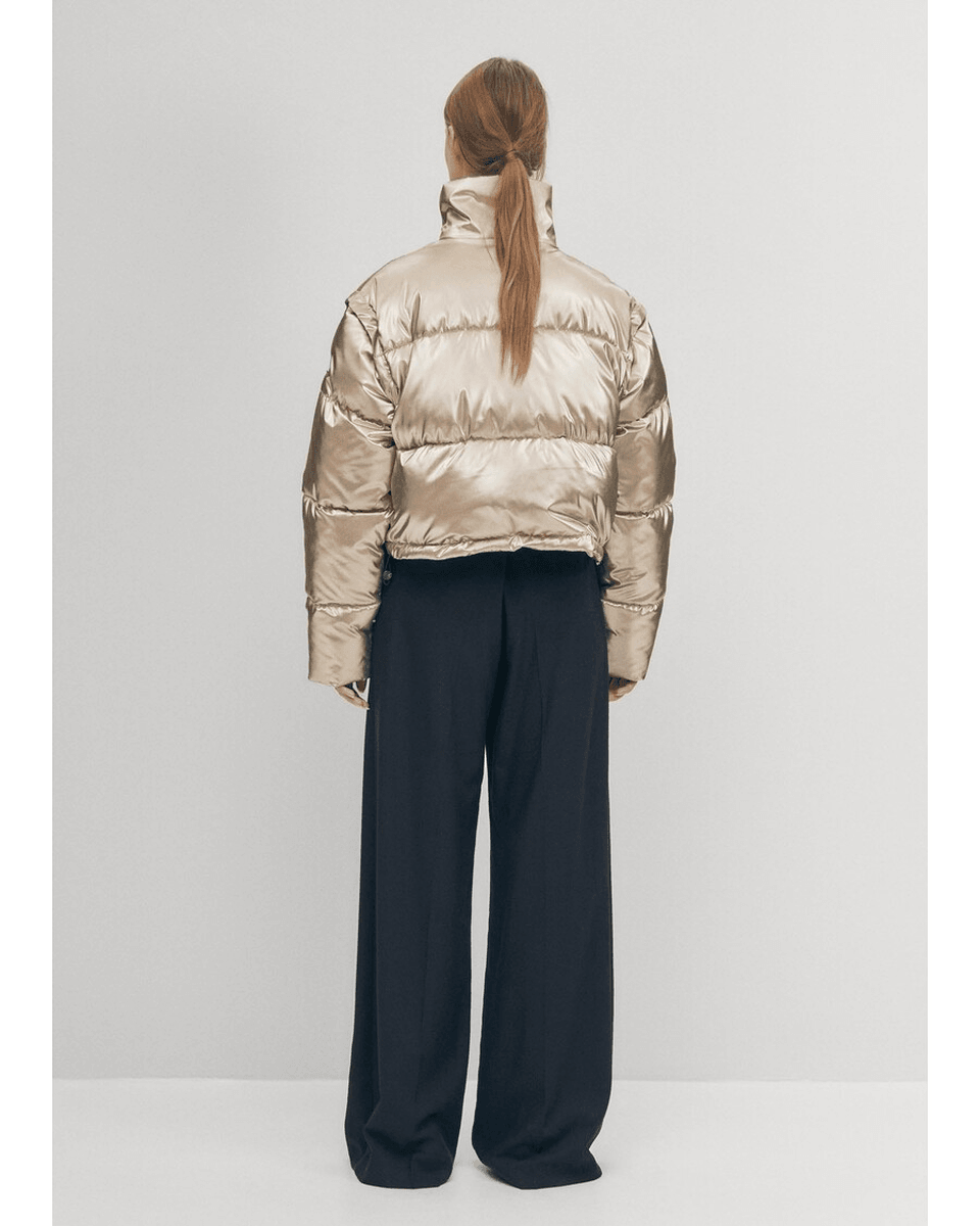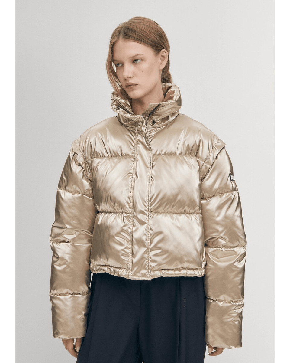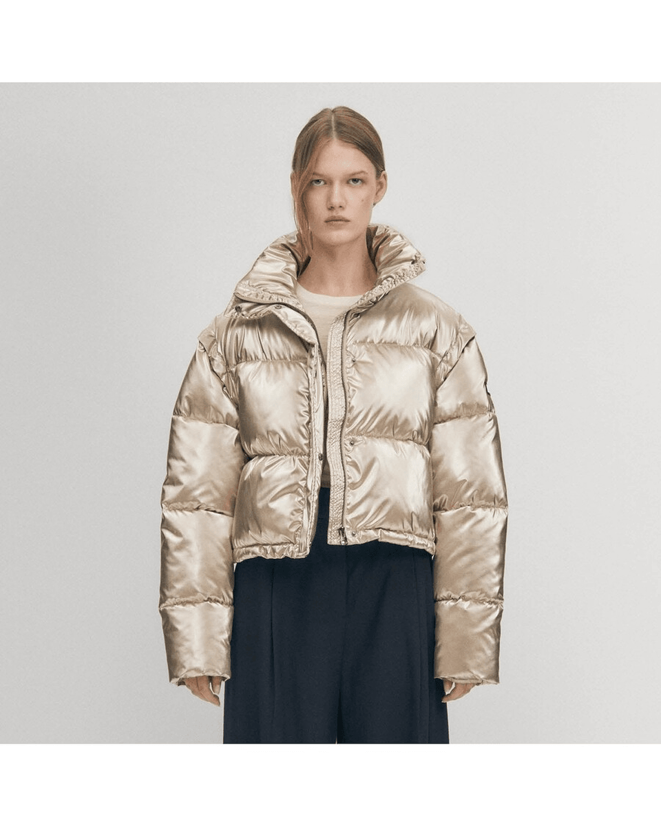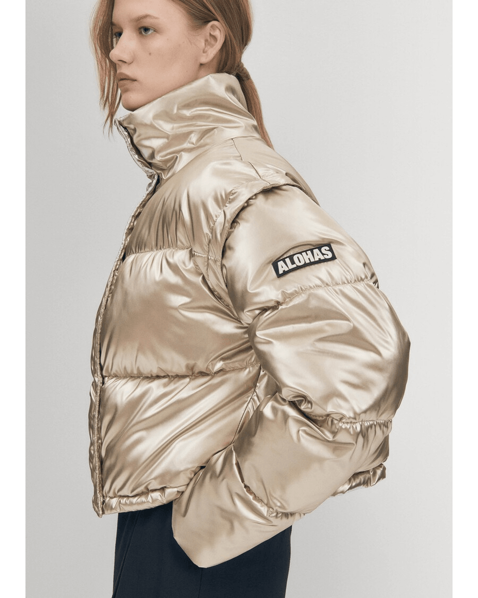 otkrijte Savršenu Kombinaciju Stila I Funkcionalnosti Sa alohas Chicago Zlatnim Kaputom. Ovaj Zapanjujući Zlatni Skraćeni Puffer Kaput Je Dizajniran Za Modernu Osobu Koja Ceni I Modu I Udobnost. Prigrlite Zimski Hlad Dok Pravite Izjavu!
