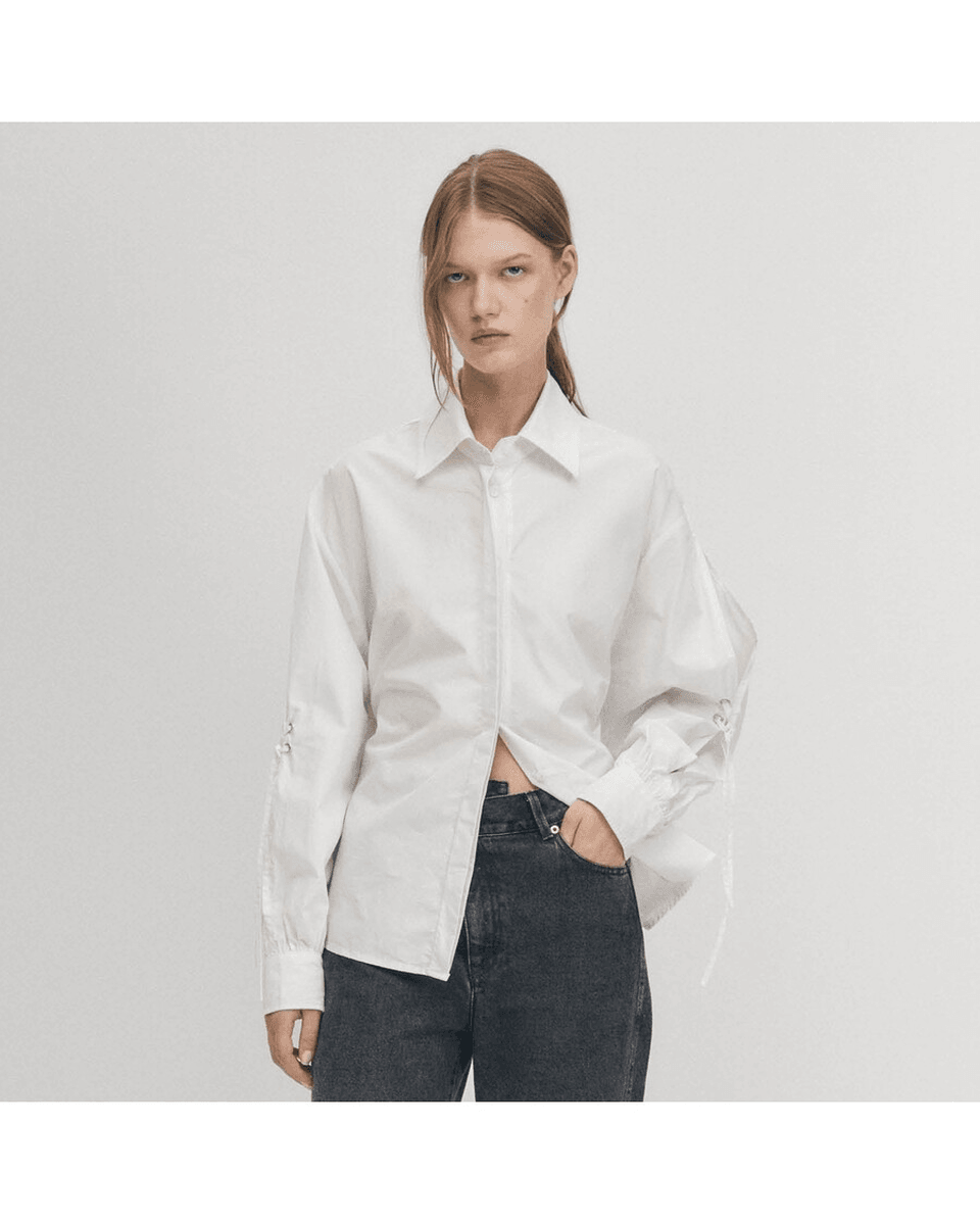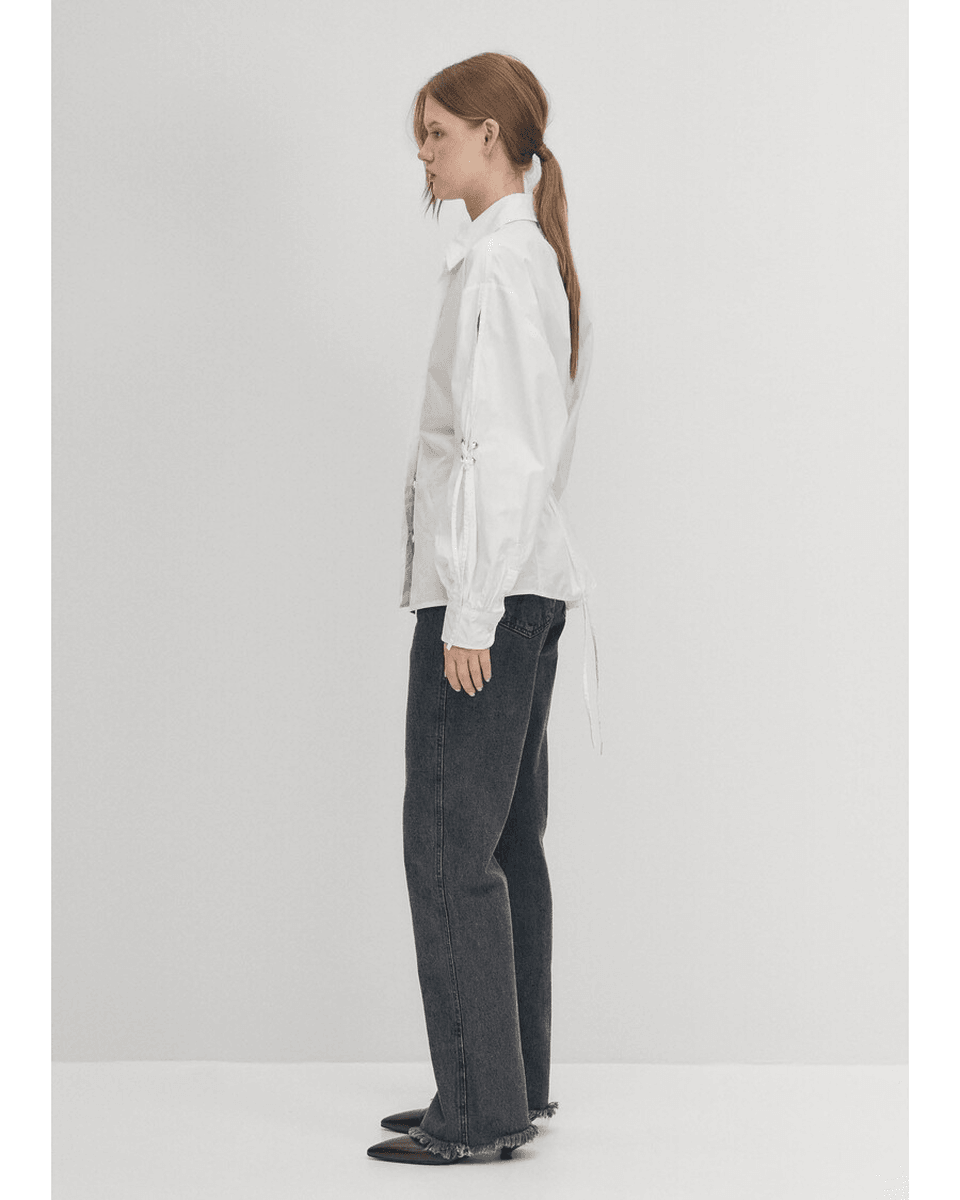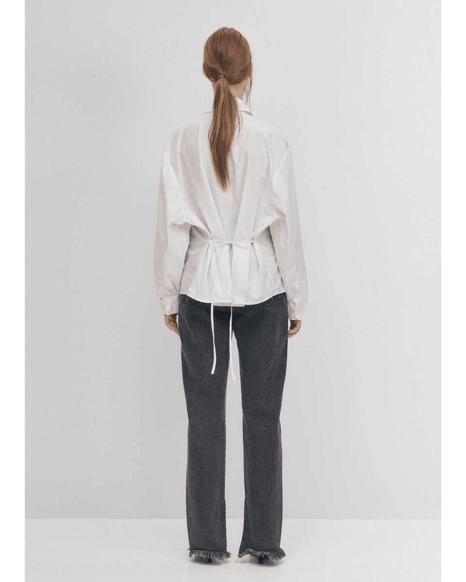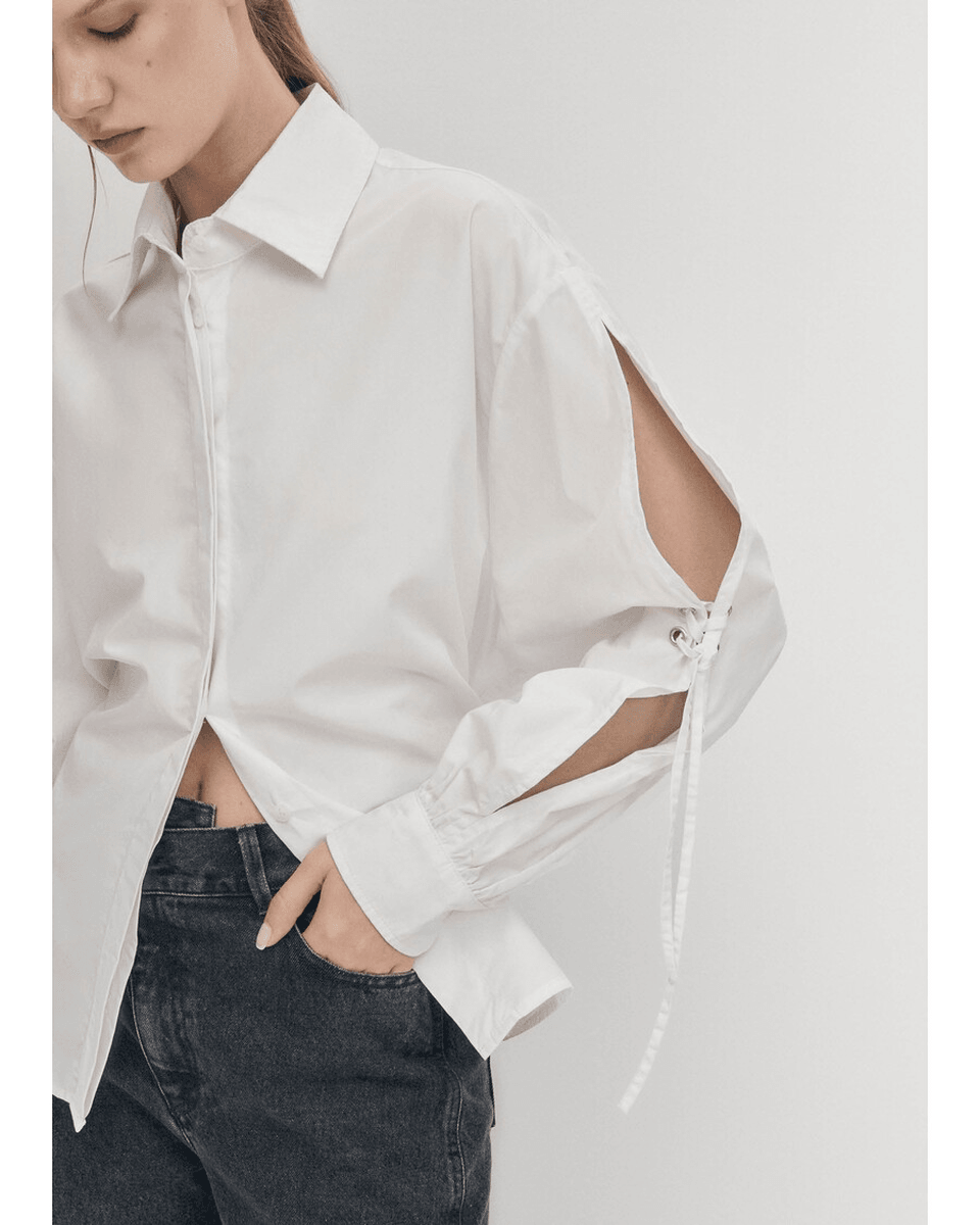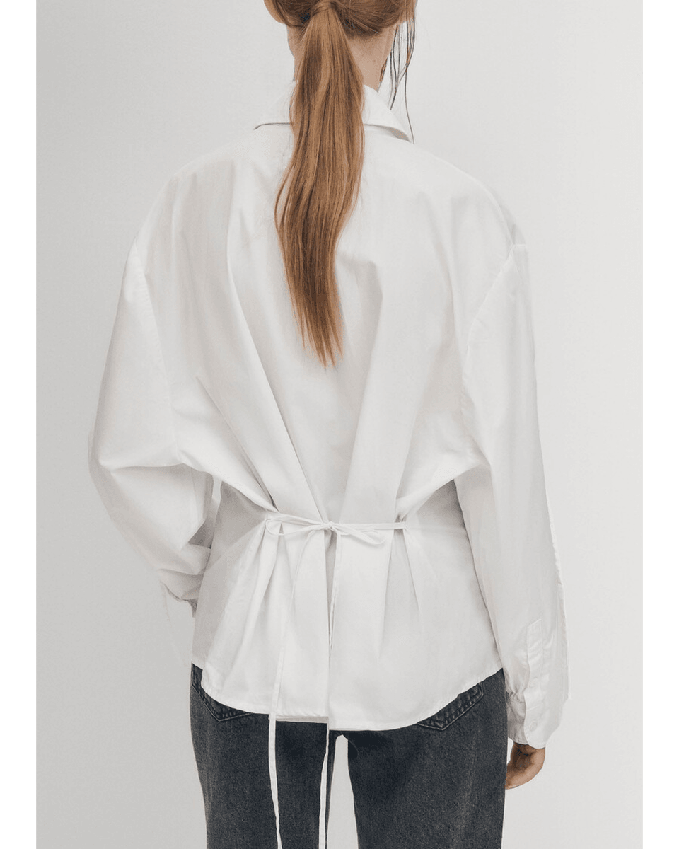 alohas Sugar Bela Košulja Kombinuje Klasične Elemente Sa Modernim Stilom. Njen Kroj Sa Dugmadima Je Unapređen Razigranim Vezicama I Strateški Postavljenim Izrezima. Dizajnirana Da Se Nosi Neuredno, Ova Košulja Prikazuje Skupljeni Nisko Pozadi Deo Koji Dodaje Dašak Elegancije Vašem Izgledu.