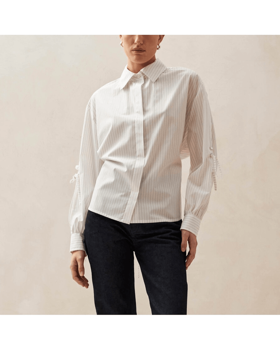 alohas Sugar Crvena Košulja Sa Tankim Prugama Je Dizajnirana Da Impresionira. Sa Skrivenim Dugmadima I Detaljima Sa Vezicom Na Rukavima, Ova Košulja Nudi Savršenu Kombinaciju Stila I Funkcionalnosti. Podesiv Struk Vam Daje Slobodu Da Prilagodite Svoj Kroj, Naglašavajući Vašu Prirodnu Figuru.