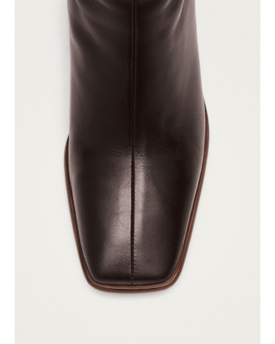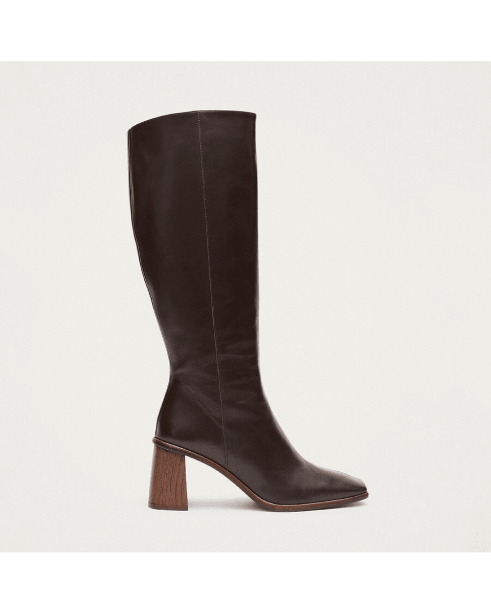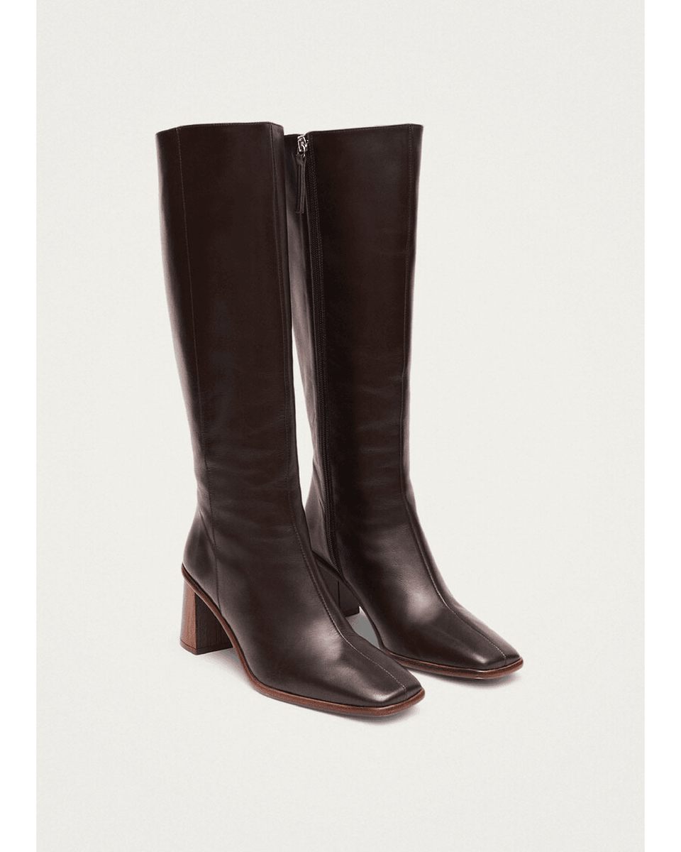 alohas East Coffee Brown Leather Boots Prikazuju Bezvremenski Dizajn Koji Podiže Svaki Ansambl. Stil Do Kolena Ne Samo Da Pruža Toplinu, Već Se I Divno Kombinuje Sa Suknjama, Haljinama Ili Vašim Omiljenim Farmerkama. Blok Peta Osigurava Da Možete Hodati Samouvereno Ceo Dan, Dok Kvadratni Vrh Daje Ovim čizmama Savremeni Izgled.