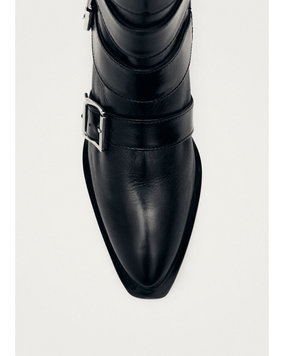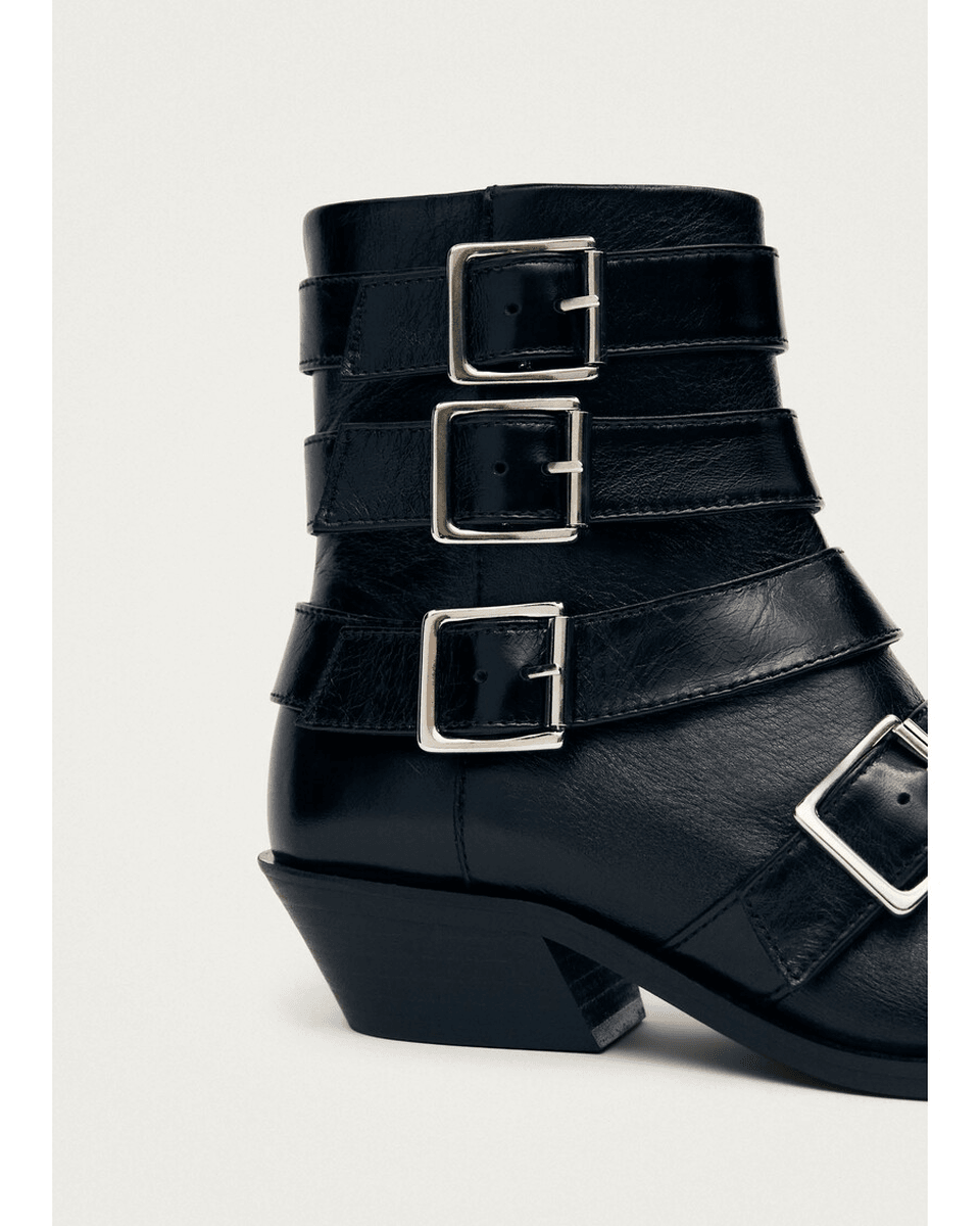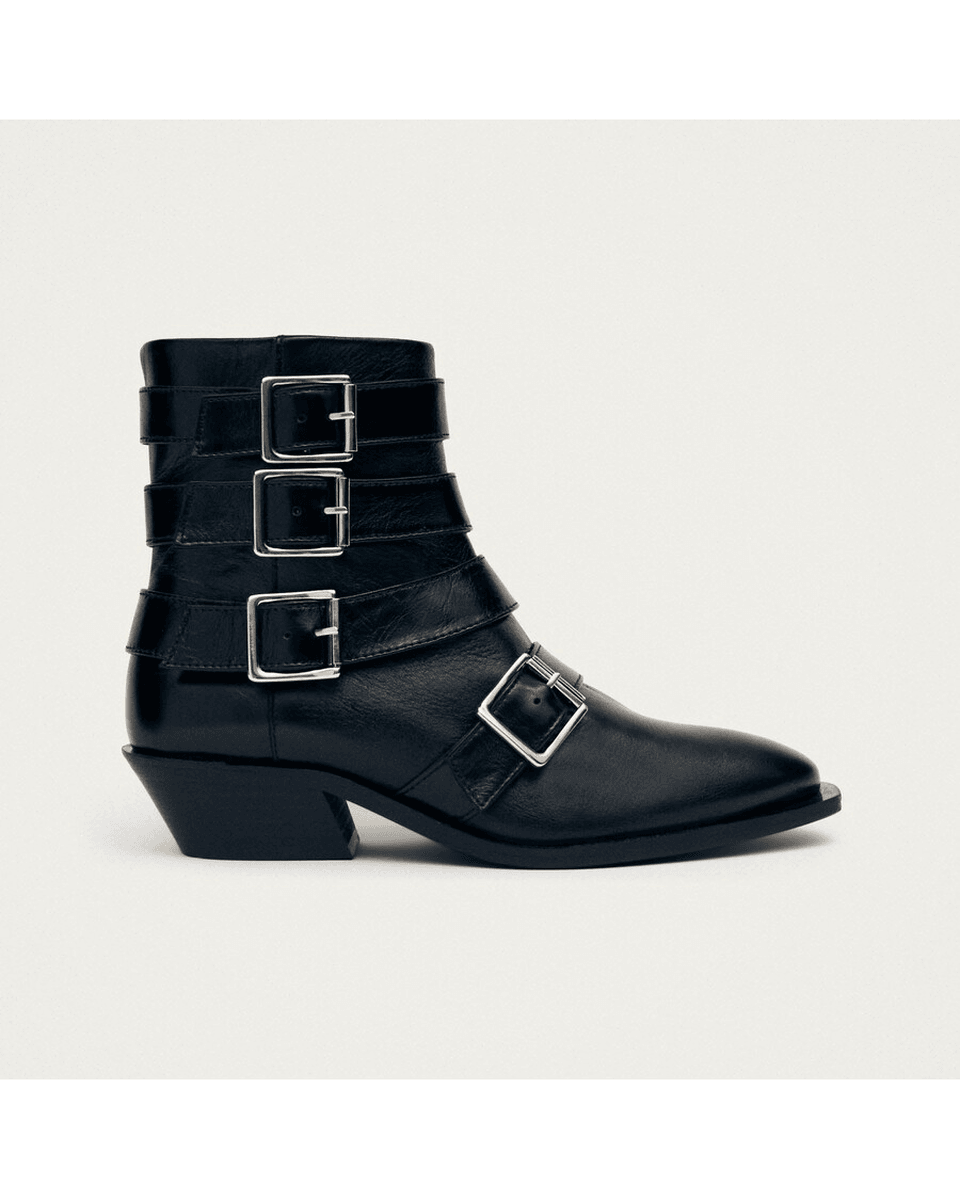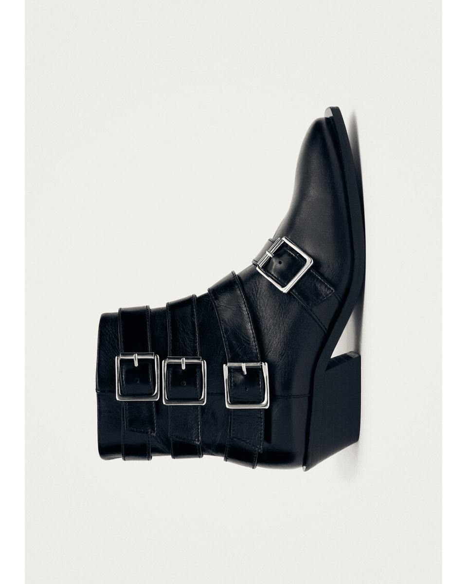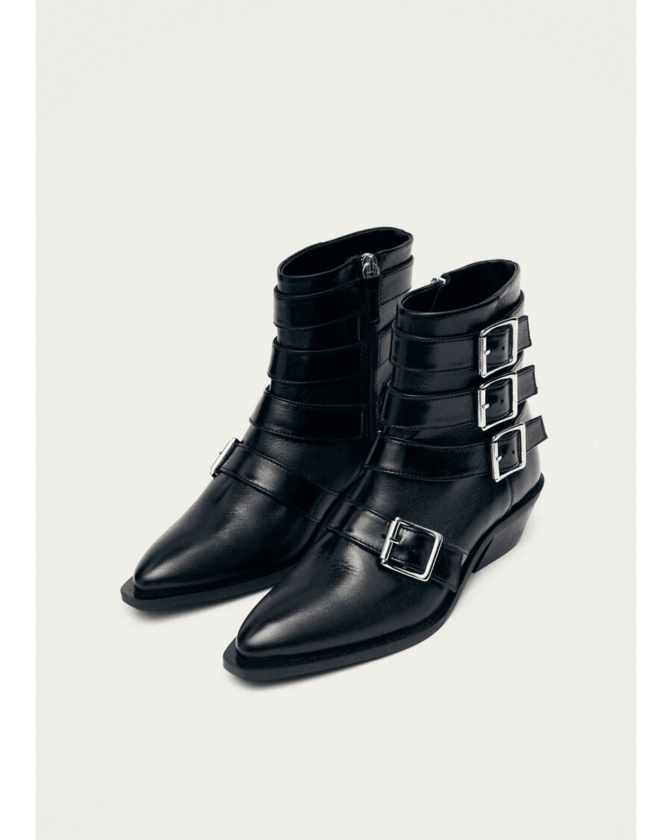alohas Eras Crne Kožne čizme Do članaka Su Idealan Kompromis Između Robusne Privlačnosti Jahača I Klasičnog šarma Kauboja. Kao Mlađa Sestra Ryder čizama, Ove čizme Obećavaju Istu Kvalitetu I Stil U Kompaktnijem Obliku. šiljati Prsti Naglašavaju Vašu Siluetu, Dok Kaubojke Pružaju Udoban Podizanje Za Celodnevno Nošenje.