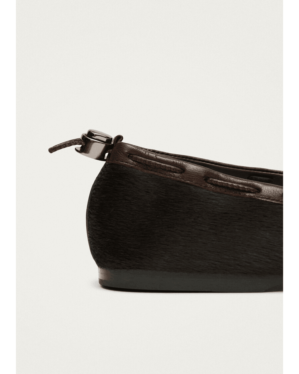 alohas Gill Mekane Smeđe Kožne Baletanke Su Oličenje Minimalističkog Dizajna. Njihov Okrugli Oblik I Izvanredna Smeđa Teleća Dlaka Stvaraju Sofisticiran Izgled Koji Je Istovremeno Stilizovan I Udoban. Jedini Ukras Je Inovativna Detaljna Vrpca, Koja Vam Omogućava Da Prilagodite Fit Prema Vašim željama.