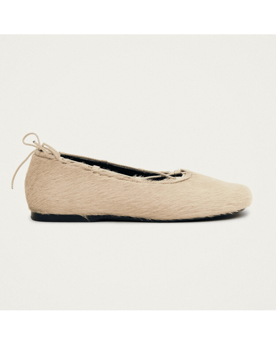 zakoračite U Eleganciju Sa alohas Hollis Mekim Krem Kožnim Baletankama. Izrađene Od Luksuzne Krem Teleće Dlake, Ove Baletanke Kombinuju Minimalistički Dizajn Sa Jedinstvenom Teksturom, čineći Ih Savršenim Dodatkom Svakoj Garderobi.