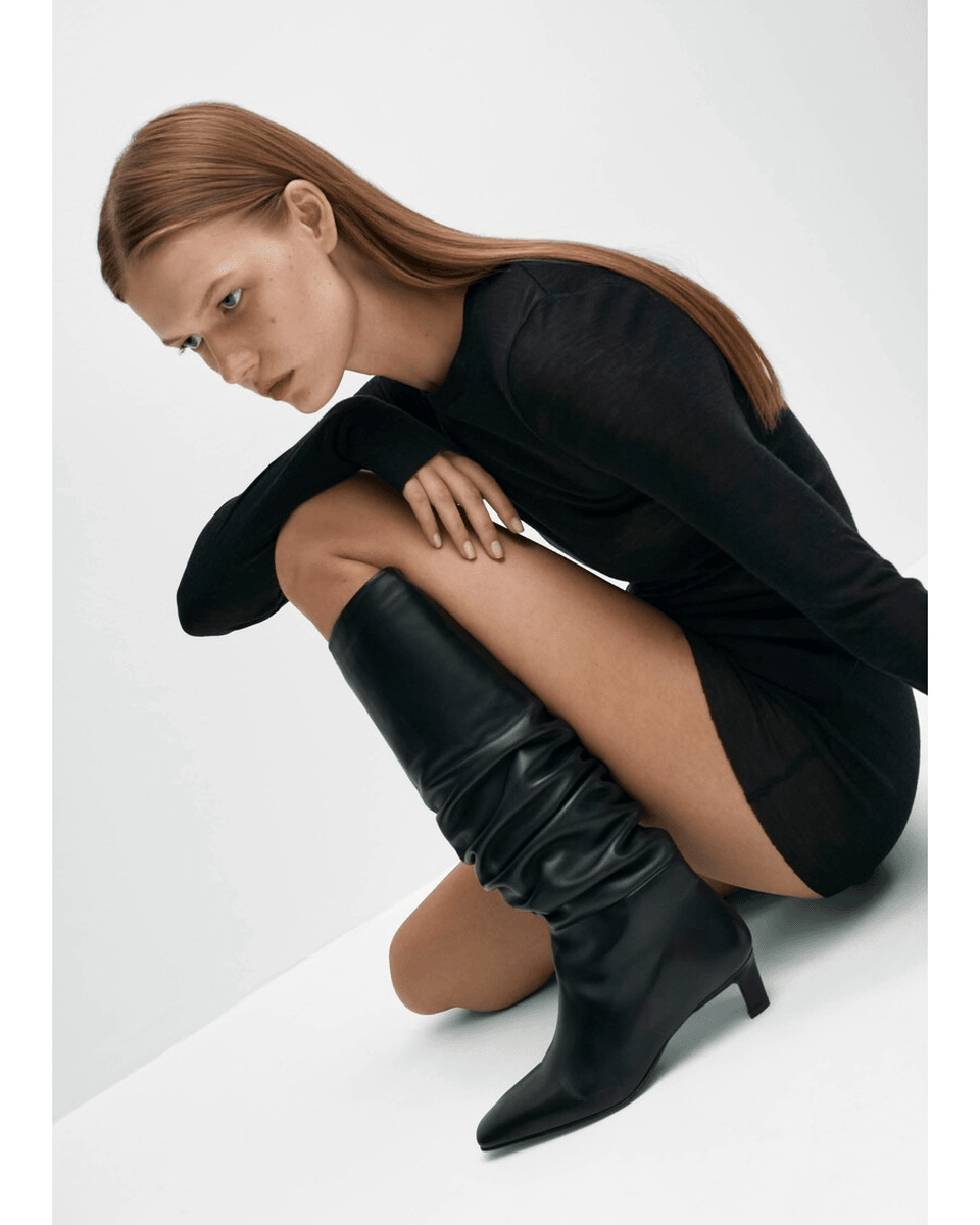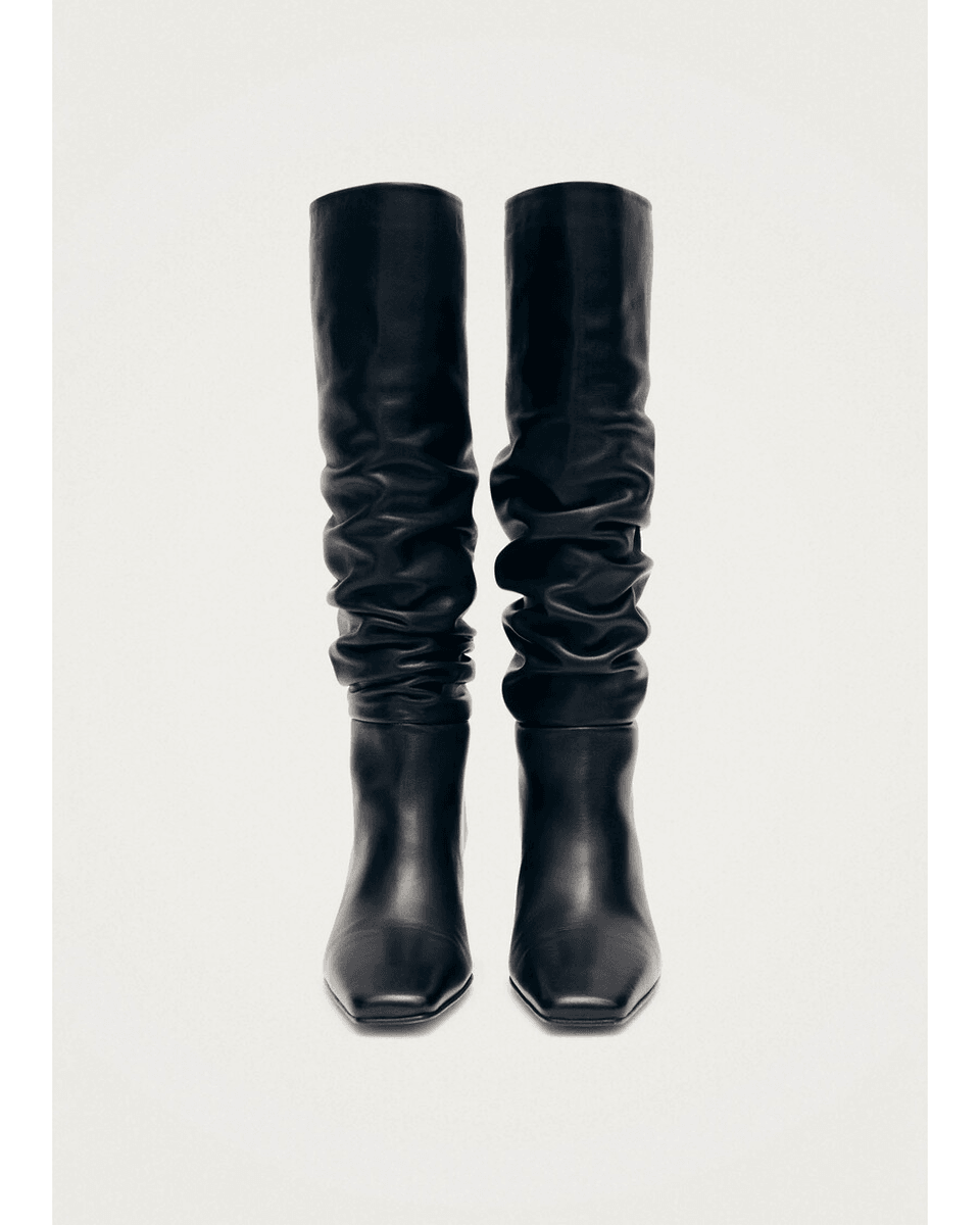 sa Svojim Jedinstvenim Naboranim Efektom Na čizmama, Ove čizme Su Dizajnirane Da Ostave Utisak. Istaknite Se U Svakoj Gužvi I Neka Vaša Obuća Govori Umesto Vas. alohas Kalila Crne Kožne čizme Nisu Samo Modni Izbor; One Su Izbor Načina života Za Samouverenu ženu.