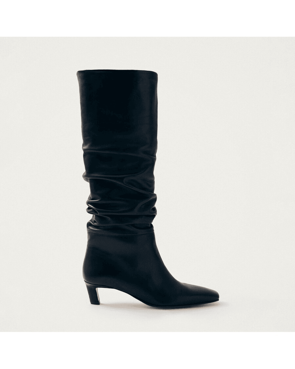 alohas Kalila Crne Kožne čizme Su Vešto Izrađene Od Premium Crne Kože, Sa Produženim Kvadratnim Prstima Koji Pojačavaju Njihov Savremeni Izgled. Kitten Potpetice Pružaju Savršenu Visinu Dok Osiguravaju Vašu Udobnost Tokom Celog Dana. Bilo Da Ih Nosite Uz Farmerke, Haljine Ili Suknje, Ove čizme će Dodati Upečatljiv šarm Svakoj Kombinaciji, Lako Prelazeći Iz Dana U Noć.