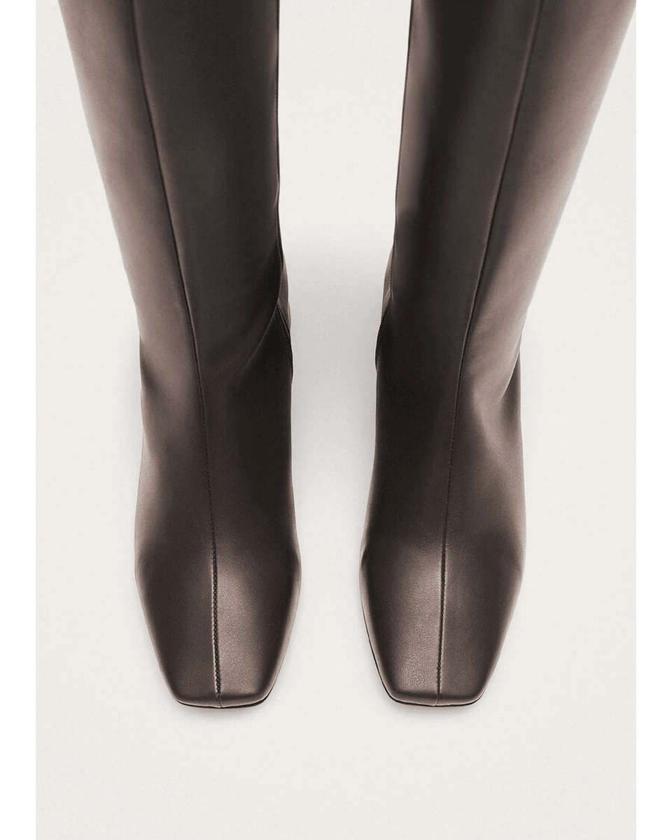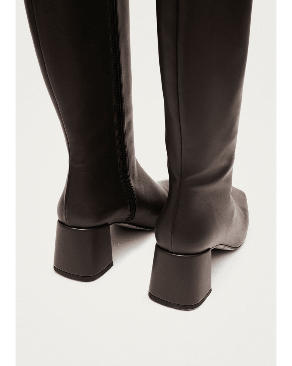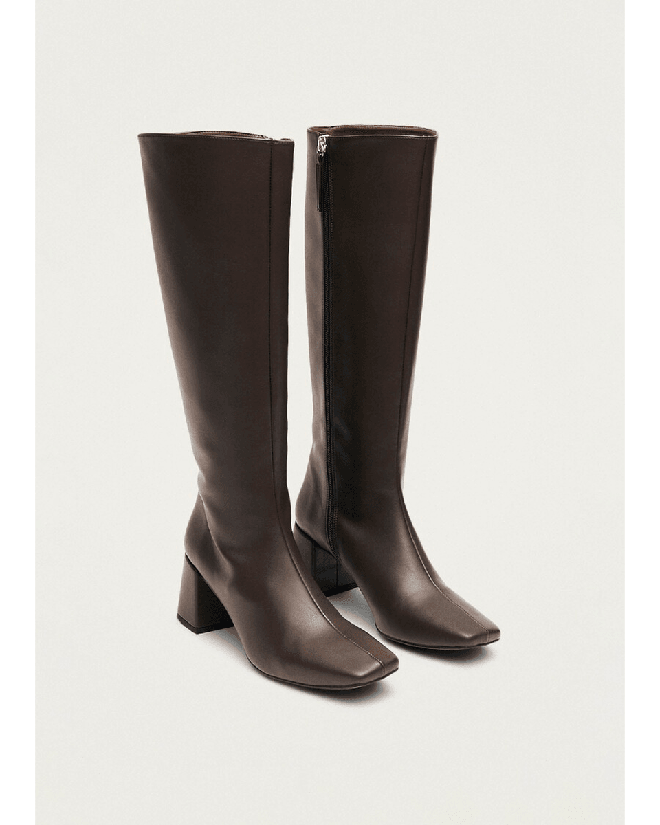 alohas Kreč Umber Smeđe Veganske Kožne čizme Su Dizajnirane Za Modno Svesnu Osobu Koja Ceni I Stil I Održivost. Dizajn Do Kolena Pruža Laskav Izgled, Dok čvrsta Blok Peta Nudi Stabilnost I Udobnost, Savršeno Za Duge Dane Napolju. Bilo Da Se Nose Sa Farmerkama, Suknjama Ili Haljinama, Ove čizme Dodaju Sofisticiran Dodir Svakom Ansamblu.