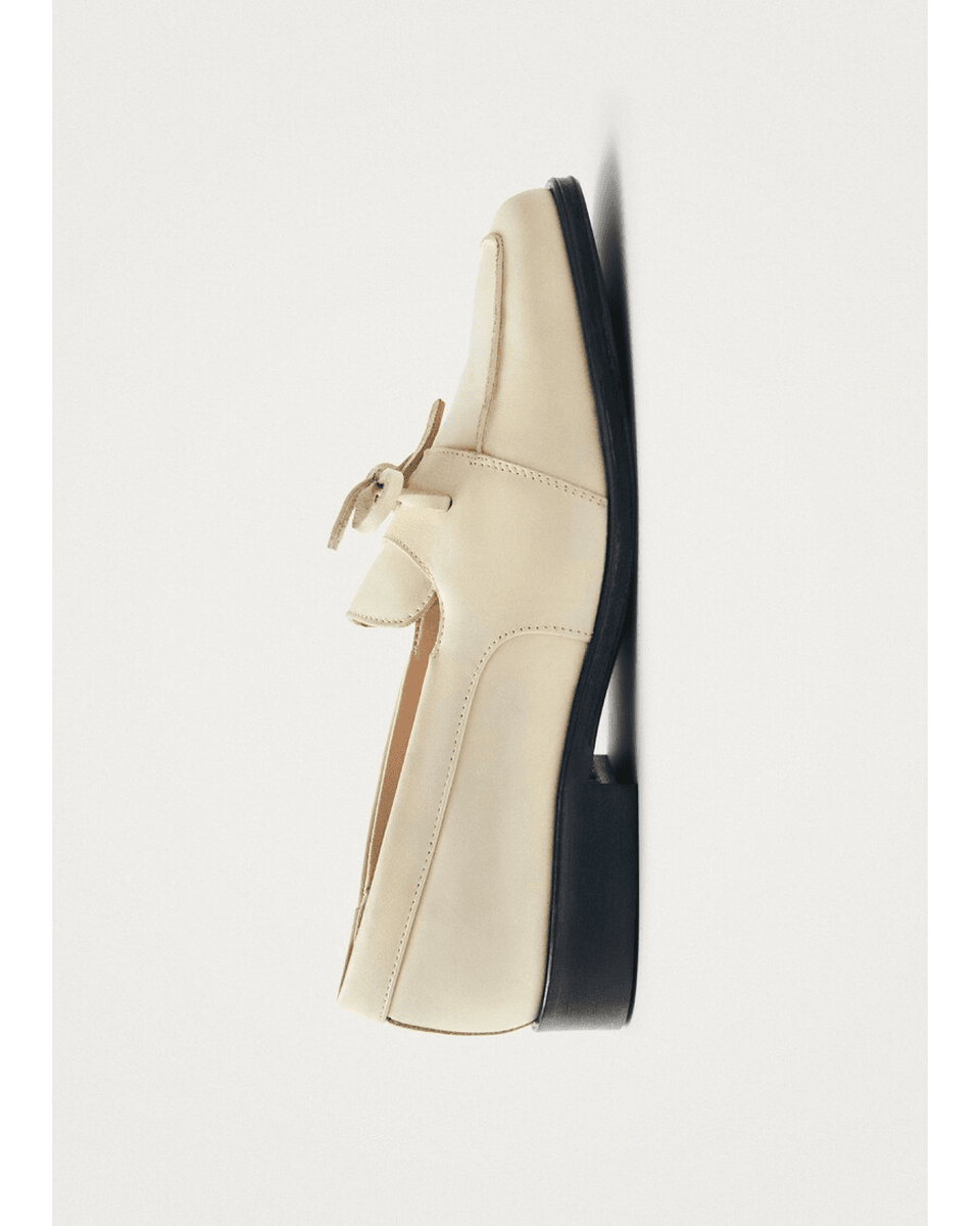 zakoračite U Sofisticiranost Sa alohas Amour Krem Kožnim Mokasinama. Ove Izvanredne Krem Kožne Mokasine Su Dizajnirane Za One Koji Cene Bezvremenski Stil U Kombinaciji Sa Modernim Detaljima. Sa Svojim Kvadratnim Prstima I Jedinstvenim Novčanim Trakama Koje Imaju Vezice Umesto Resica, One Bez Napora Podižu Svaki Outfit.