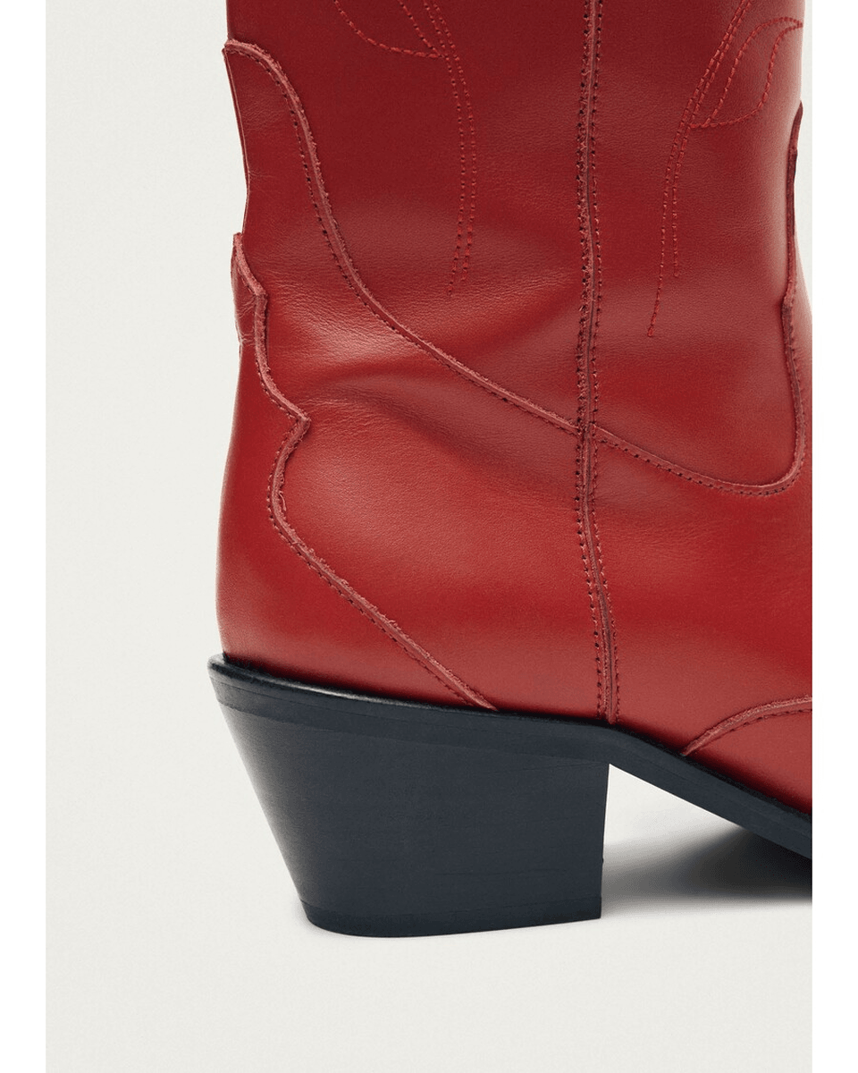alohas Liberty Crvene Kožne čizme Su Više Od Obične Obuće; One Su Modna Izjava. Izrađene Od Visokokvalitetne Crvene Kože, Ove čizme Sadrže Sve Tradicionalne Elemente Kaubojskih Stilova, Uključujući šik Visinu Do Sredine Lista. Dizajn Sa šiljastim Prstima I Kubanske Potpetice Pružaju Laskavu Siluetu, čineći Ih Savršenim Za Opuštene Izlaske I Formalnije Događaje.
