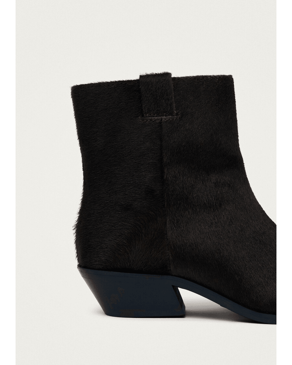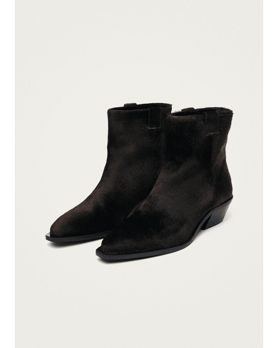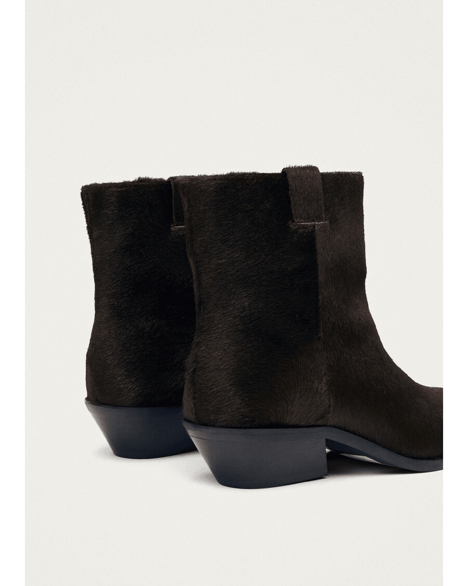 alohas Syd Soft Tamno Smeđe Kožne čizme Do članaka Nisu Samo Obuća; One Su Izjava. Njihova Elegantna Silueta Odaje Počast Klasičnim Kaubojskim čizmama Dok Zadržava Savremeni Izgled. Bogata Tamno Smeđa Teleća Dlaka Dodaje Taktilnu Kvalitetu Koja Je I Stilizovana I Udobna, čineći Ove čizme Osnovnim Komadom U Ormaru Svake Modno Svesne Osobe.