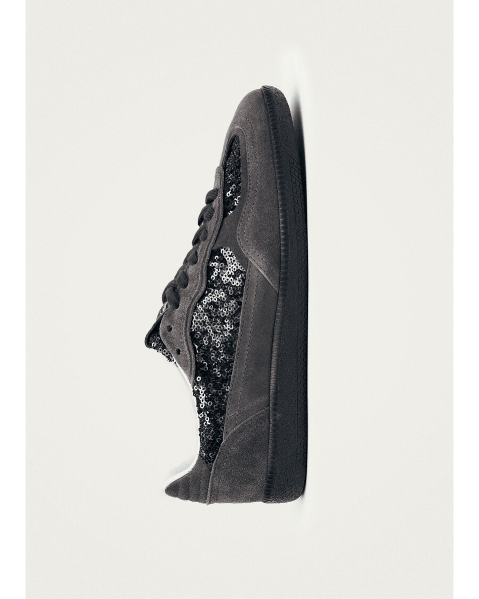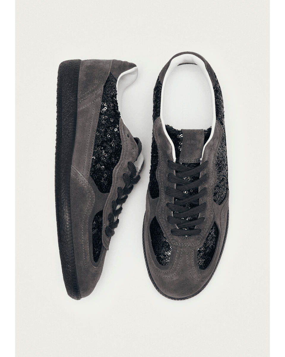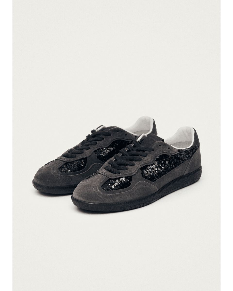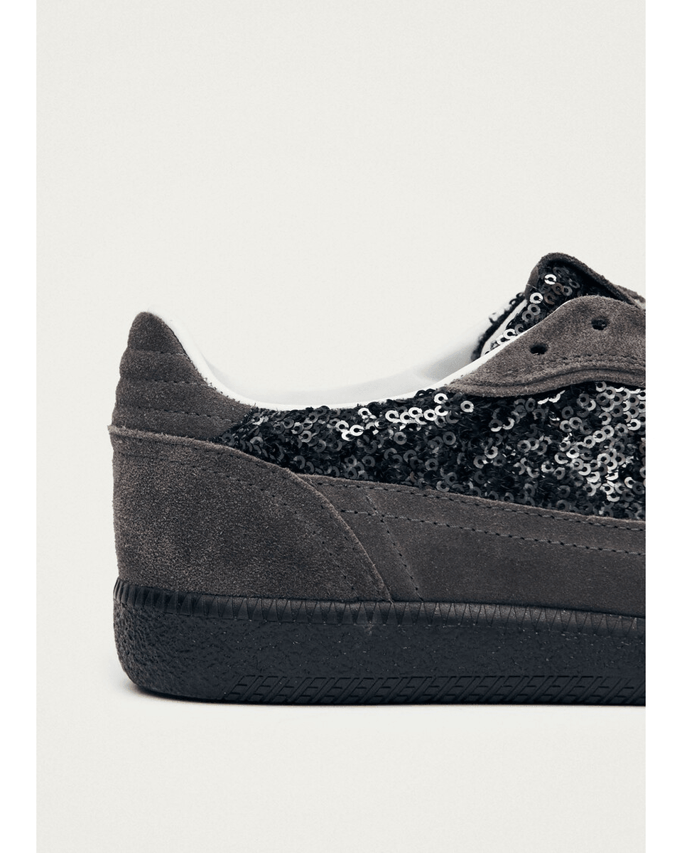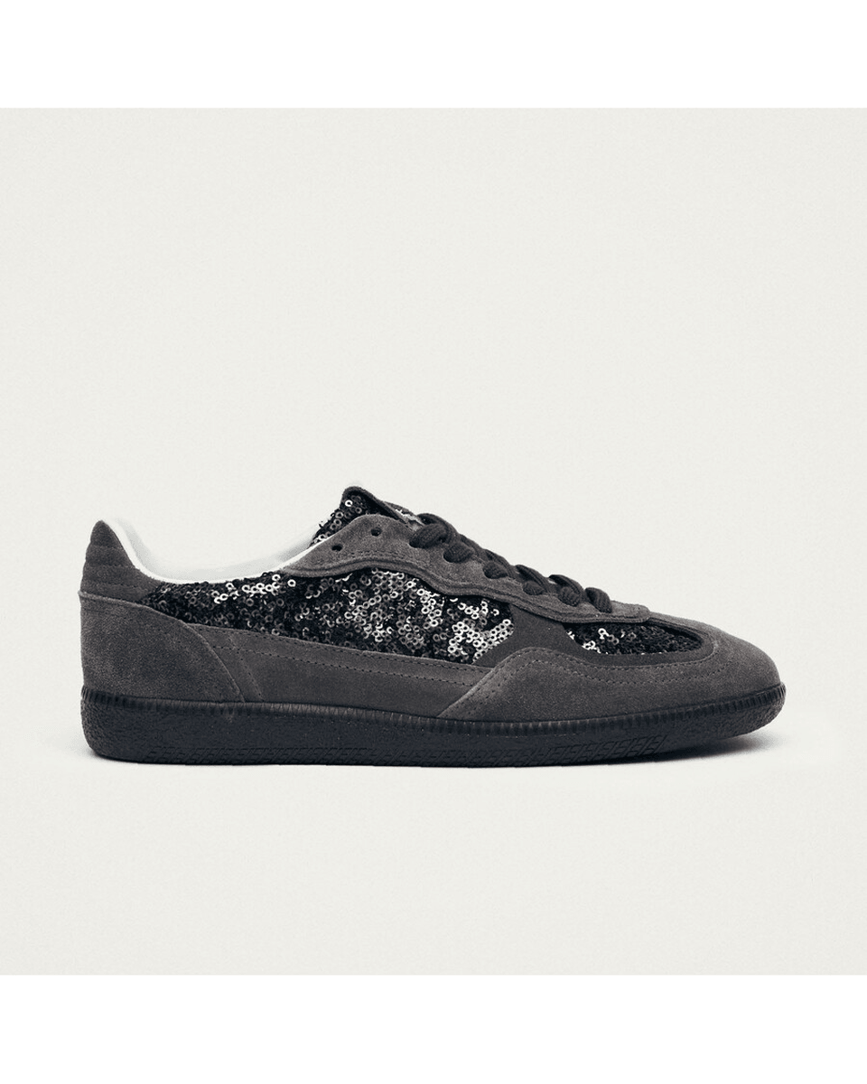 alohas Tb.490 Glint Tamno Sivi Kožni Patike Redefinišu Modernu Obuću Svojim šik, Svečanim Izgledom. Luksuzni Tamno Sivi Antilop Je Upotpunjen Sjajnim Akcentima Od šljokica, čineći Ove Patike Izvanrednim Izborom Za Praznične Okupljanja Ili Ležerne Izlaske. Niska Dizajn Osigurava Da Ih Je Lako Obući I Skinuti, Dok Gumeni đonovi Nude Udobnost Koja Vam Je Potrebna Za Nošenje Tokom Celog Dana.