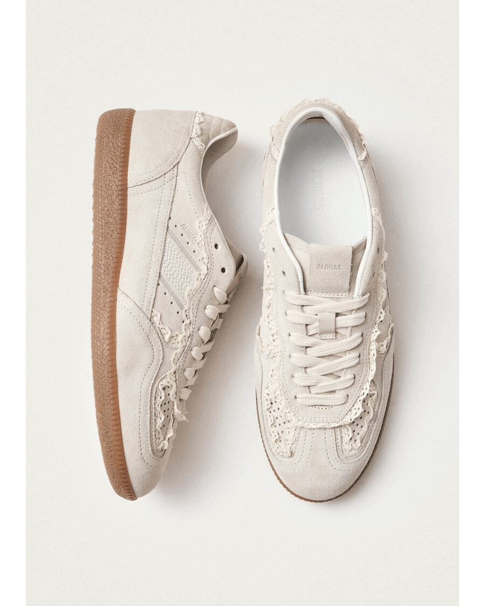 alohas Tb.490 čipkaste Krem Kožne Patike Imaju Nisku Siluetu Koja Besprekorno Kombinuje Udobnost I Stil. Mekani Krem Nubuk Pruža Luksuzan Osećaj, Dok Gumeni đonovi Nude Pouzdanu Trakciju I Podršku. Sa Vidljivim šavovima I Logotipom Utisnutim Na Jeziku I Stranama, Ove Patike Predstavljaju Klasičnu Izradu.