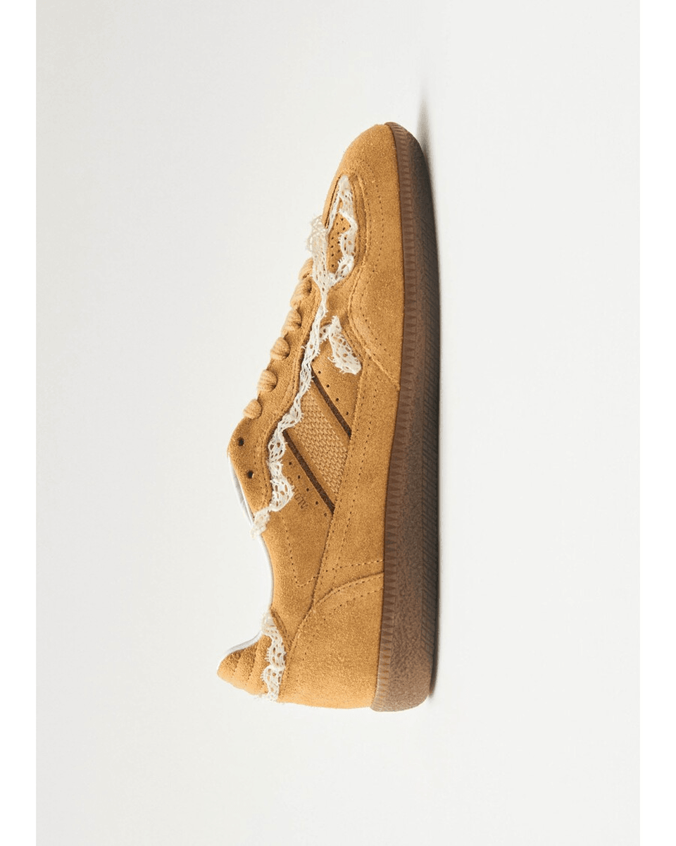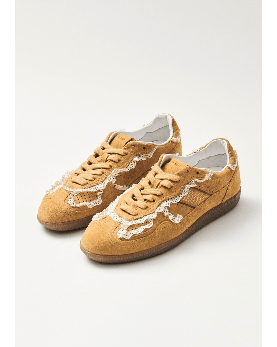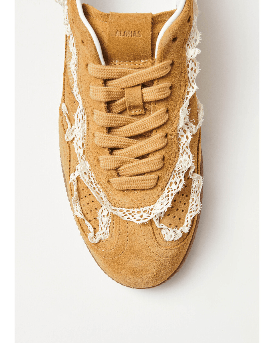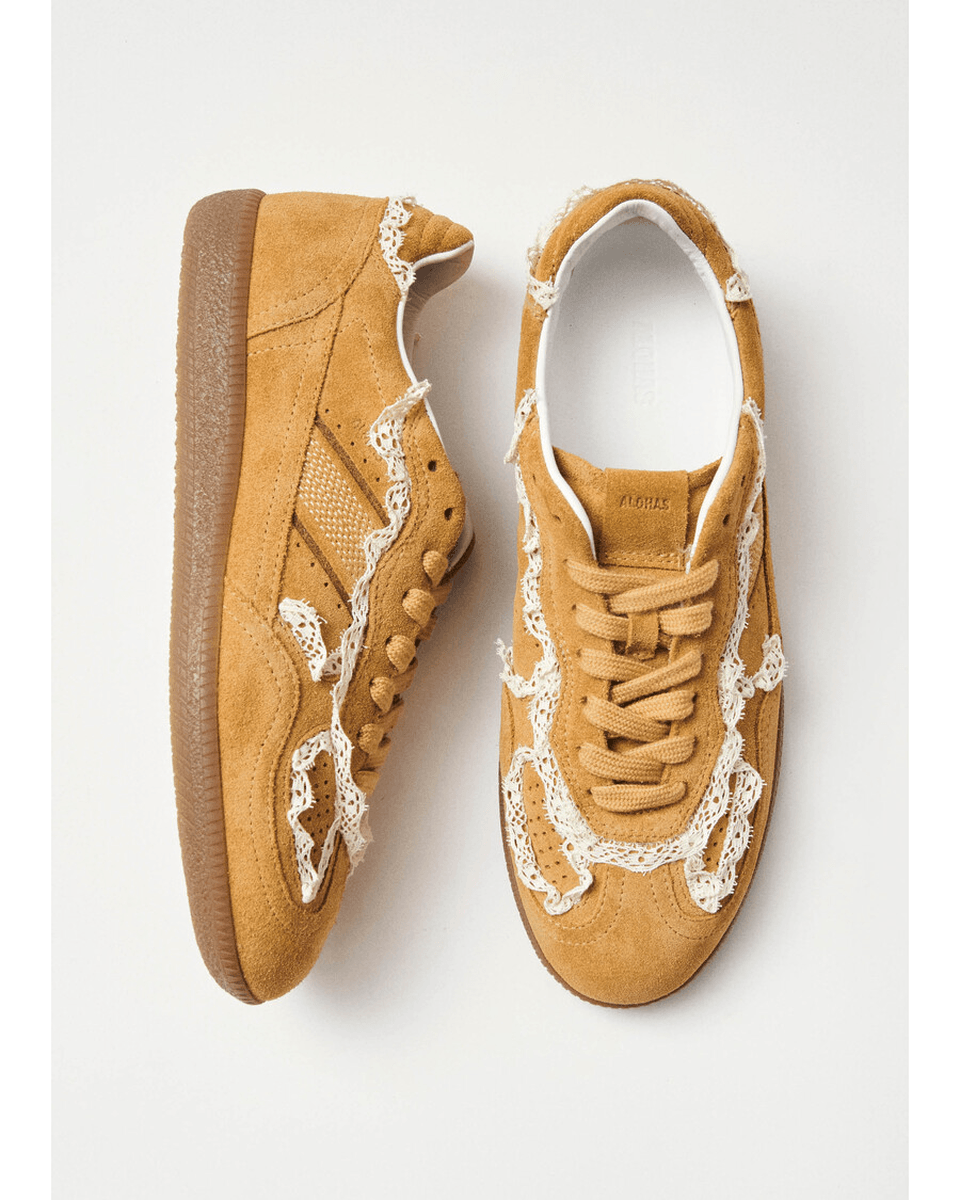 alohas Tb.490 Heklane Patike Od Medene Kože Nude Jedinstven Pristup Klasičnim Urbanim Patikama. Gornji Deo Od Medene Nubuk Kože Je Prelepo Upotpunjen Složenim Heklanim Detaljima, Dodajući Dašak Elegancije Vašem Svakodnevnom Izgledu. Dizajnirane Sa Vidljivim šavovima I Ugraviranim Logotipom Na Jeziku I Stranama, Ove Patike Su Savršene Za Opuštene Izlaske I šik Okupljanja.