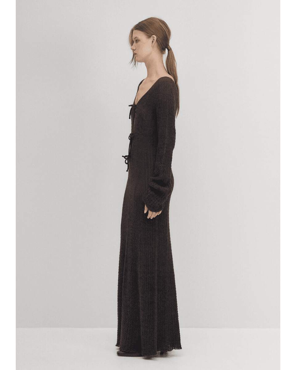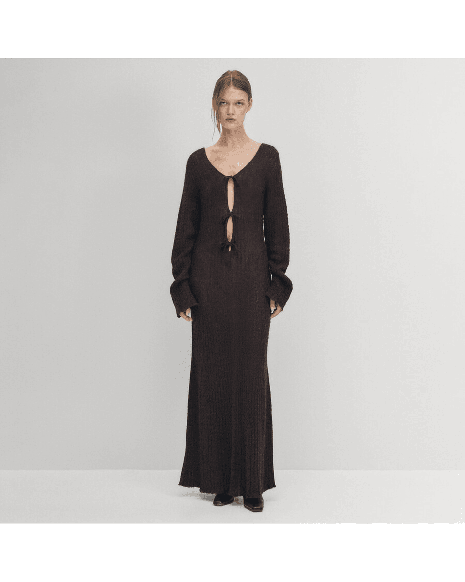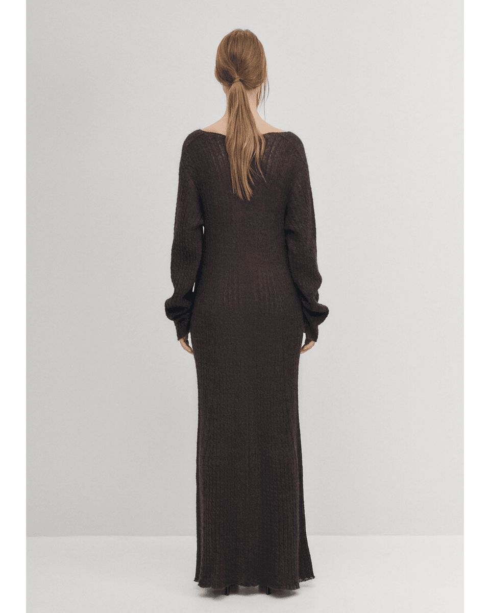 alohas Triza Smeđa Haljina Je Potpuno Pletena U Kablu, Prikazujući Izvanrednu Izradu. Rukavi Koji Sežu Do Zapešća Pružaju Dodatnu Toplinu Bez žrtvovanja Stila. Luksuzna Mešavina Alpake Ne Samo Da Se Divno Oseća Na Koži, Već Vas I Održava U Chic Izgledu. Bilo Da Je Kombinujete Sa čizmama Do članaka Ili Je Oblačite Sa štiklama, Ova Haljina Je Dovoljno Svestrana Za Svaku Garderobu.