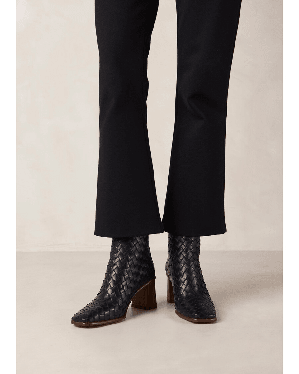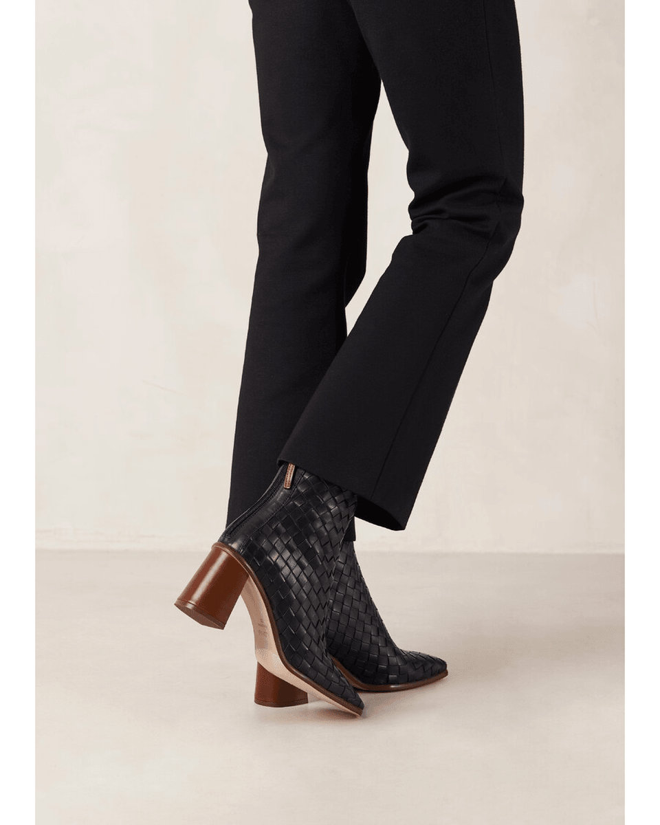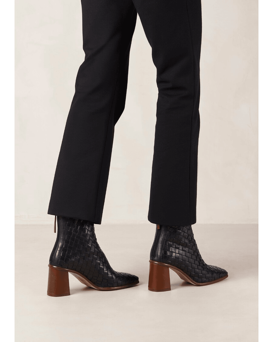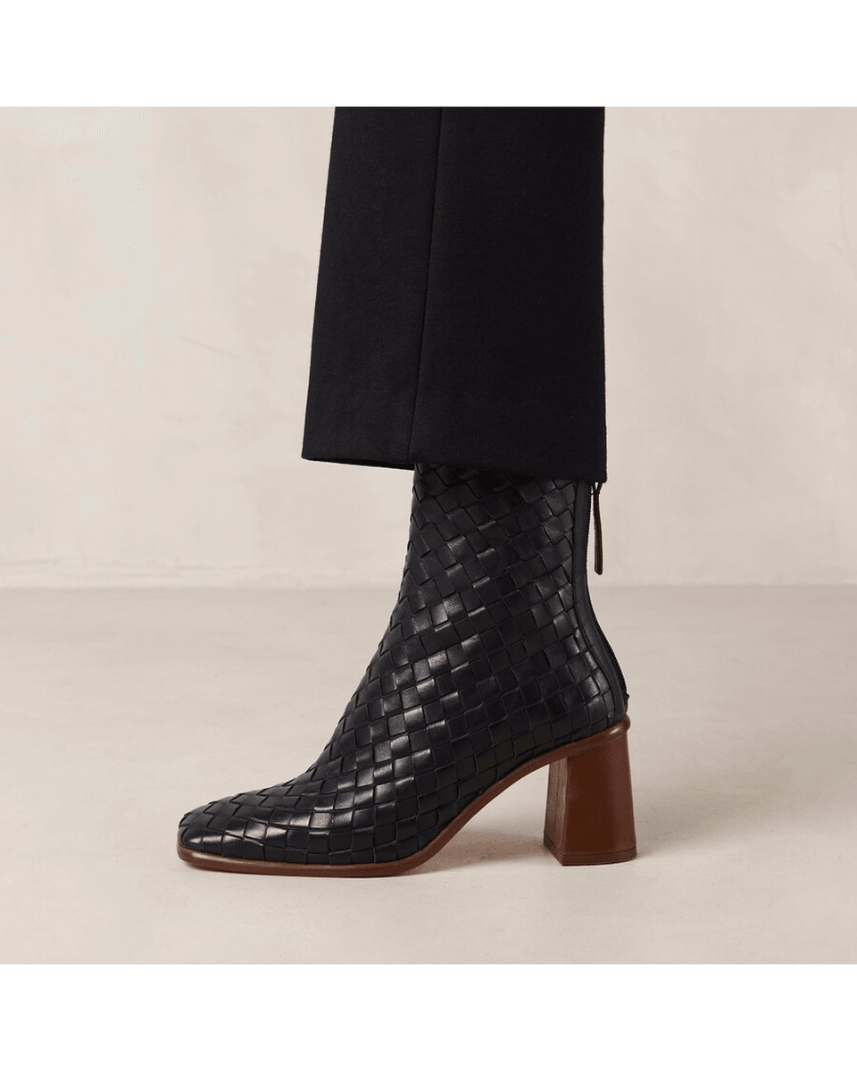 zakoračite U Stil Sa alohas West Pletenim Crnim Kožnim čizmama Do članaka. Ove Zapanjujuće čizme Su Dizajnirane Za Modernu Modnu Entuzijastkinju Koja Ceni I Udobnost I Eleganciju. Izrađene Od Vrhunske Pletene Crne Kože, Donose Sofisticiran Dodir Svakoj Kombinaciji.