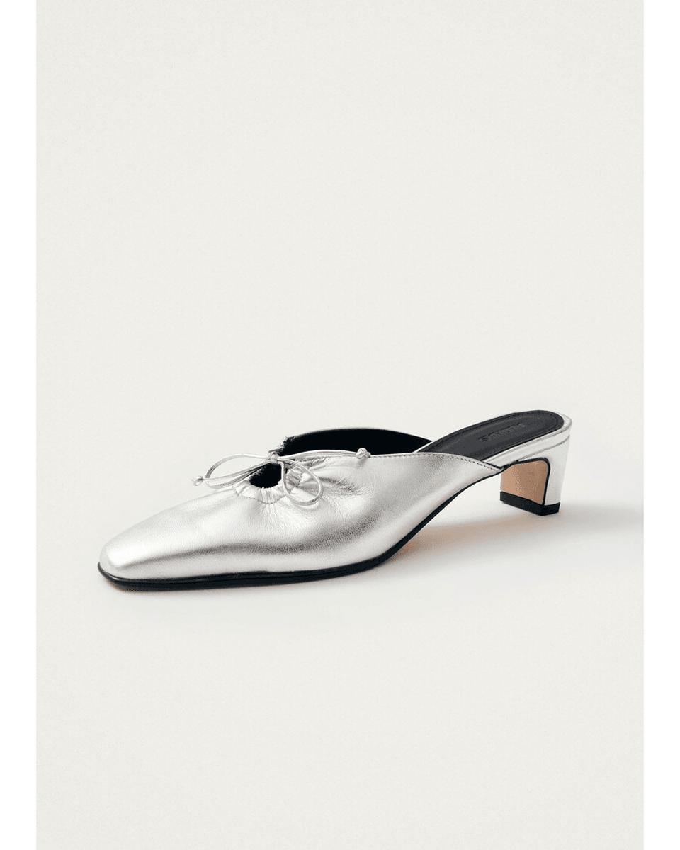 alohas Amar Shimmer Silver Leather Mules Omdefinierar Sofistikering. Med En Spetsig Tå är Dessa Mules Ett Stiligt Tillskott Till Din Garderob Som Kan övergå Sömlöst Från Dag Till Natt. Den Shimmer Silver Finishen Ger En Touch Av Glamour, Vilket Gör Dem Perfekta För Speciella Tillfällen Eller Helt Enkelt För Att Klä Upp Din Vardagsklädsel.